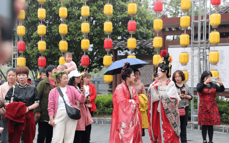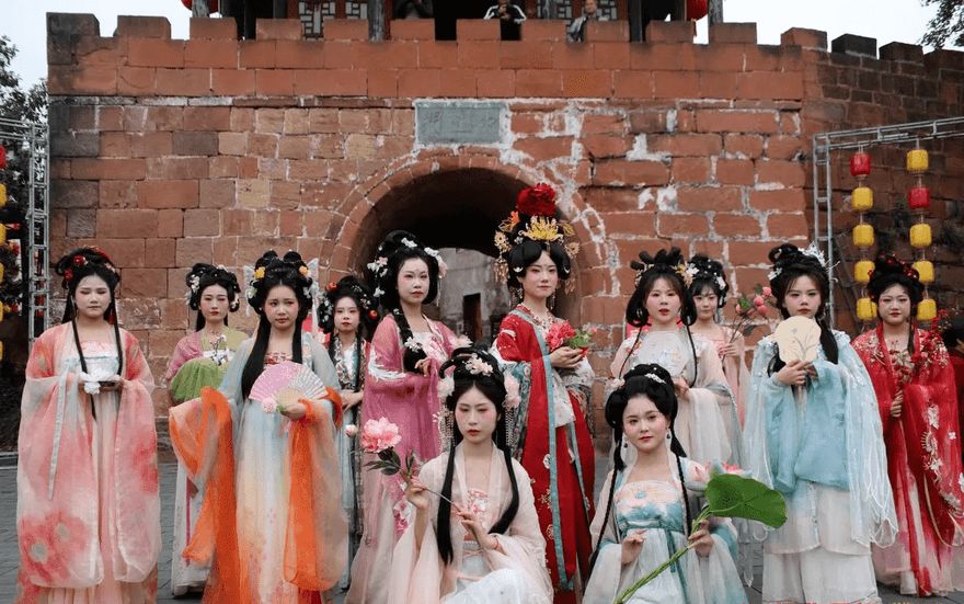 这个古城,每一块砖,每一片瓦,都仿佛在诉说着千年前的故事。你可以在街头巷尾,闻到那个时代特有的香气,那些特色小吃,看了垂涎欲滴,吃了回味无穷。你还可以看到那些穿上汉服的小姐姐们,化身为“十二花神”,集体亮相,展示了古风的风采,眼前一亮。剪纸、竹编、渔鼓、辣子姜、糍粑等非遗项目在非遗集市上展示,展现了传统文化的魅力。