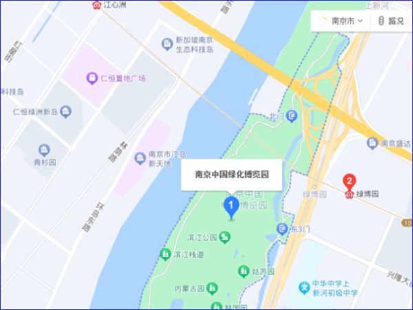 南京绿博园位于南京市建邺区河西新城滨江,西接夹江,东临长江大道。它建成于2005年9月,因首届中国绿化博览会在此成功举办而得名,是中国最具特色的绿化主题公园之一,也是南京河西滨江风光带的示范段,长江沿岸最大的城市公园。