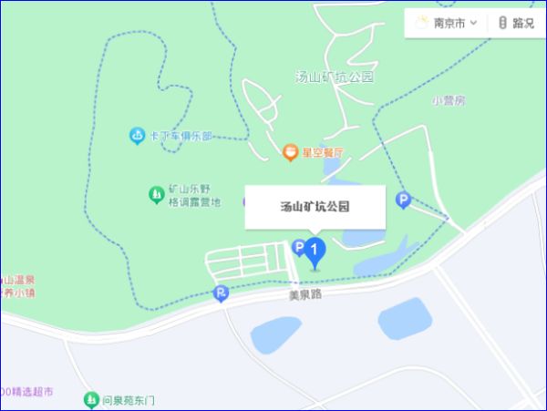 汤山矿坑公园位于南京汤山国家旅游度假区,曾是汤山最大的废弃矿坑——龙泉采石场。公园由五个采石宕口组成,占地面积约40公顷。在2017年,汤山矿坑公园项目成为住建部“城市双修”的试点工程之一。