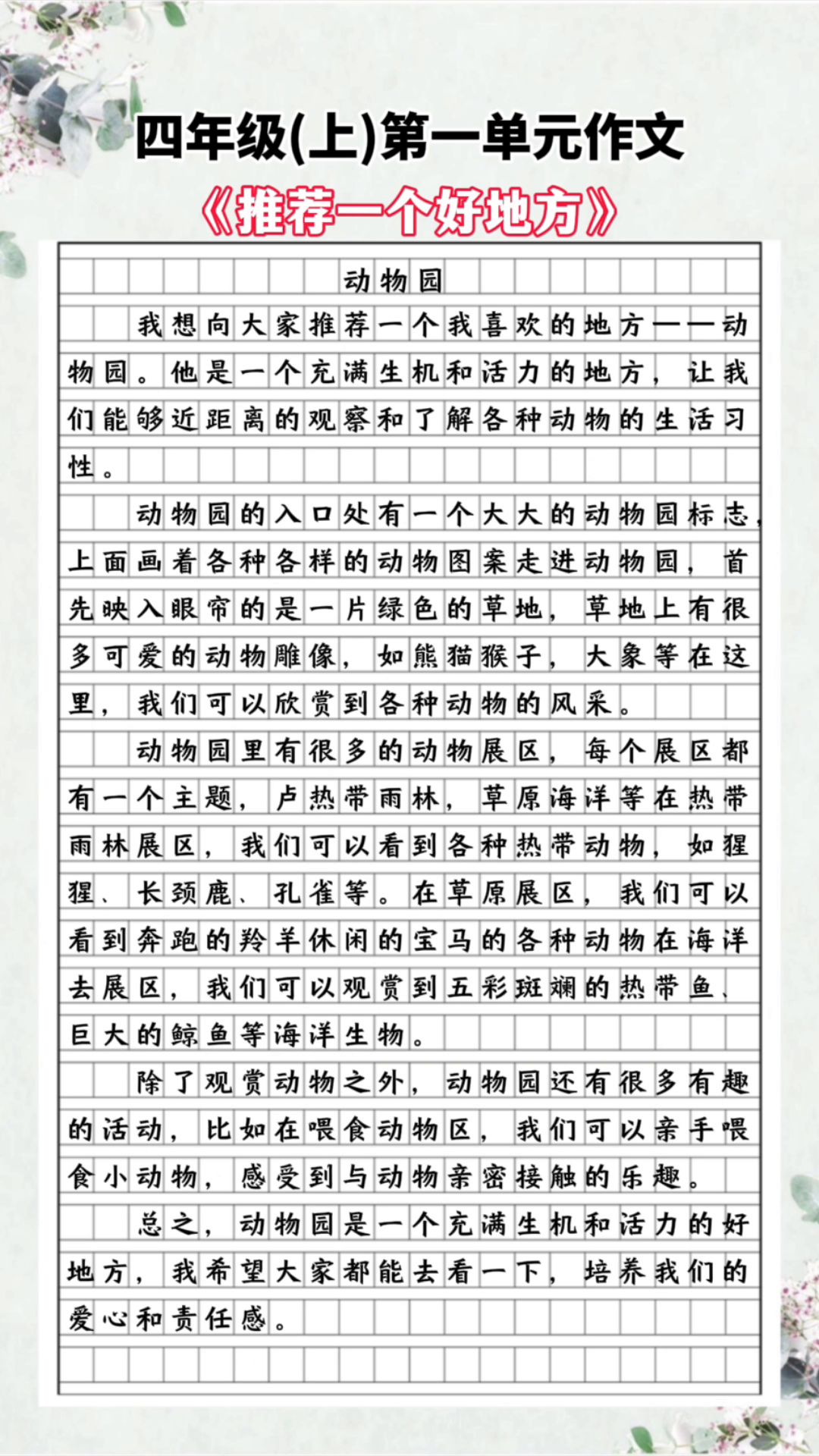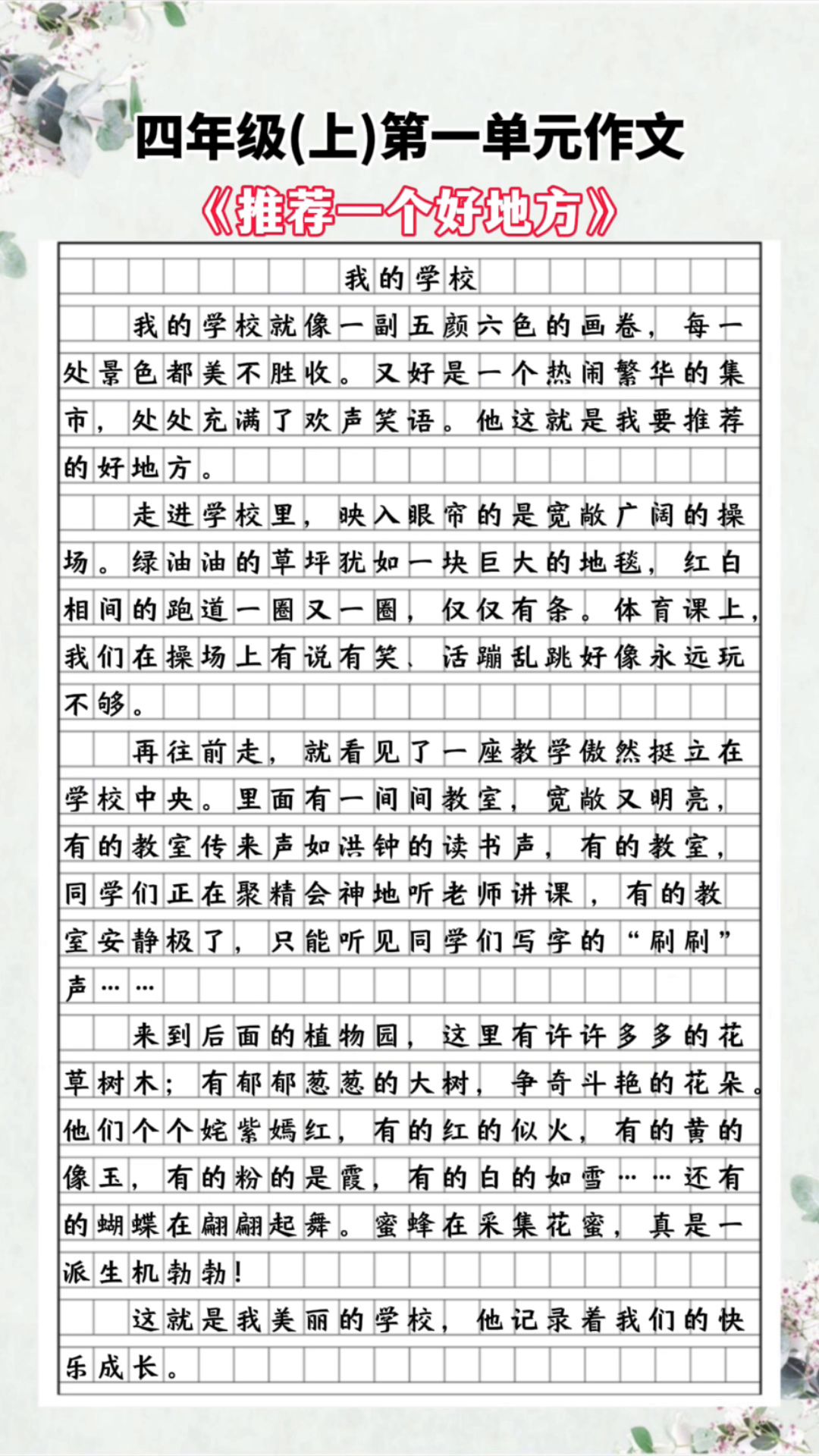 四年级(上)第一单元作文:《推荐一个好地方》。