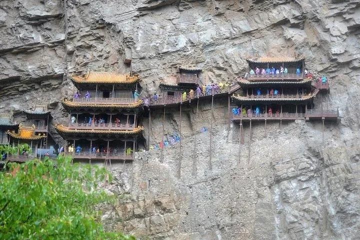 5、悬空寺。悬空而建的寺庙,万丈深渊上的建筑奇迹。位于大同市浑源县大磁窑镇。是一座悬在恒山天峰岭与翠屏山之间、峡谷中的寺庙。始建于北魏,坐北朝南,悬于绝壁之间、深涧之上,有六座殿阁飞架半空,中间与木楼梯相通,最高处最谷底50多米。