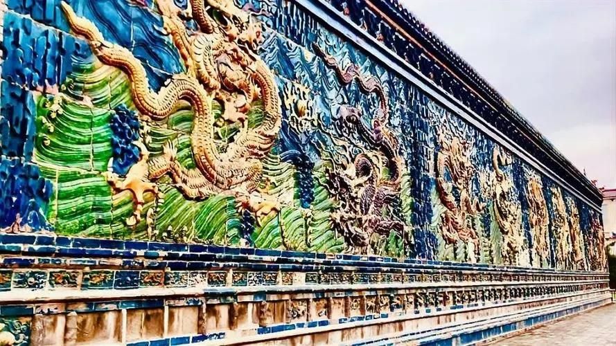 3、九龙壁。国内现存最大的影壁。我国四大龙壁之一,雕刻技艺精湛。一座制作精美,彰显尊贵的照壁。位于大同市区大东街西头。体积高大壁上均匀协调地分布着九条飞龙,是国内现存九龙壁中最大的一座。高3.72米,厚2.02米,长45.5米,雕刻完成于明代,由400多块五彩琉璃构件拼砌而成。
