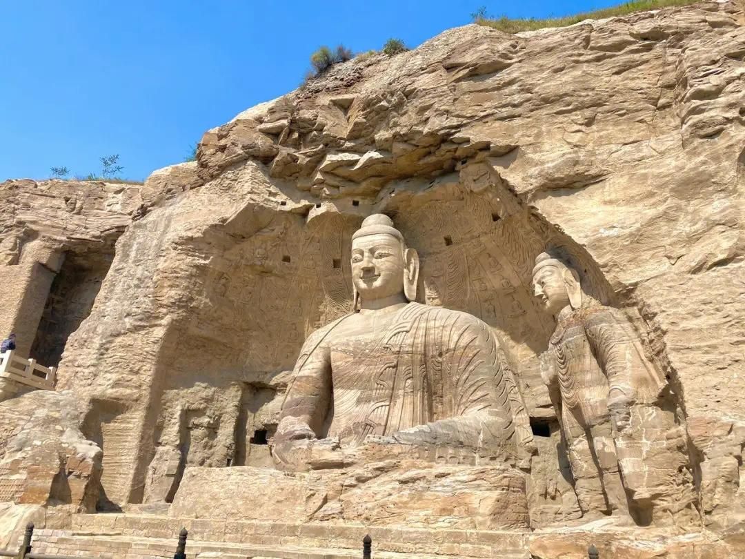 1、云冈石窟,巧夺天工的世界遗产。我国三大石窟之一,古代雕塑精品。位于大同市南郊区云岗镇。云冈石窟依山开凿而成,距今已有1000多年的历史。现存洞窟53个,石雕造像5.1万余尊,是我国三大石窟之一。第二十窟有一座高约14米的露天大佛。是大同最有名的历史古迹。