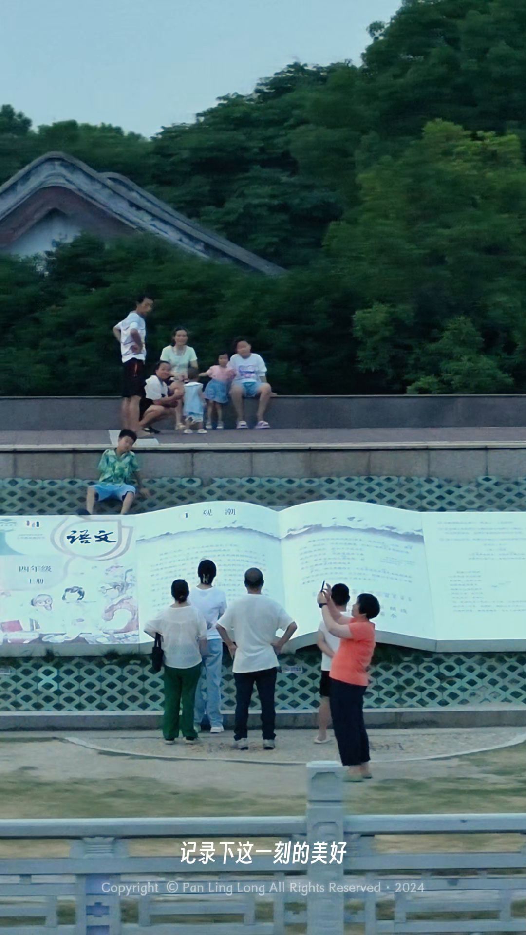 4. 夜晚的盐官秋高气爽,正是纳凉的好时节。白石坛上,铁牛旁人们或闲聊或静默,享受着这份难得的宁静与清凉。他们在这里放松身心,忘却烦恼,感受着生活的美好。