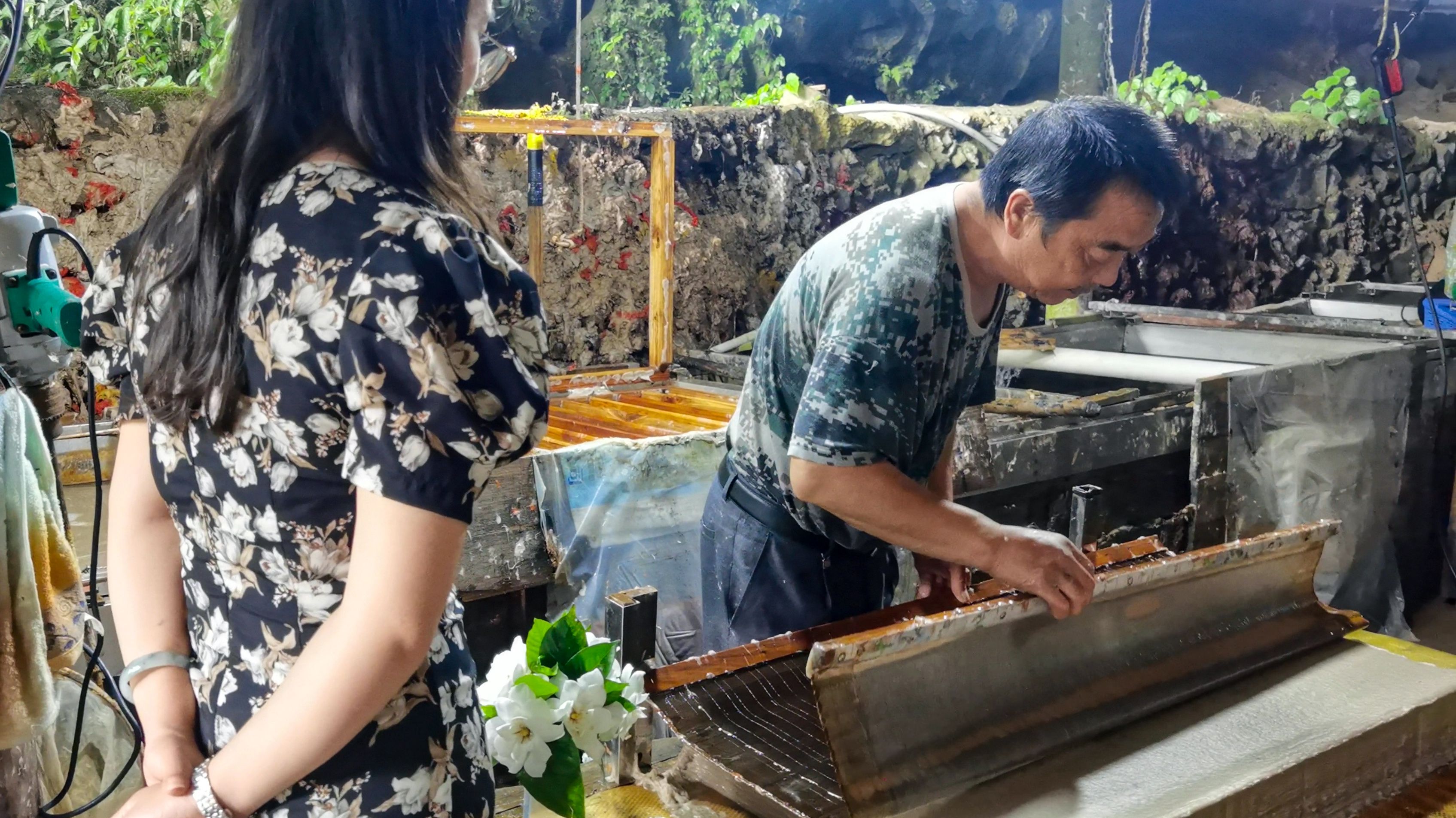 走进这山洞,那感觉就像是穿越了时空隧道,直接从现代“嗖”一下回到了古代的手工作坊! 昏暗的灯光下,一股淡淡的纸香悠悠飘来,那是古法造纸独有的韵味,让人瞬间沉醉。仿佛能听见历史的低语,看见那些匠人们汗流浃背却眼神坚定的身影。