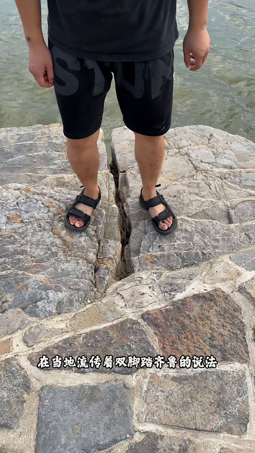 3. 这段桥面建在岩石堆上,不得不佩服古人的智慧,在当地流传着双脚踏齐鲁的说法,相传这个裂缝就是古代齐国和鲁国的分界线。