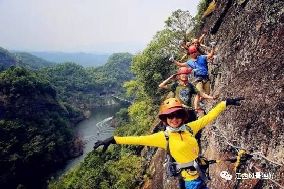 东浒寨作为湘、赣、鄂首家运营飞拉达攀岩项目的景区,惊险、刺激,让游客又害怕又喜爱。