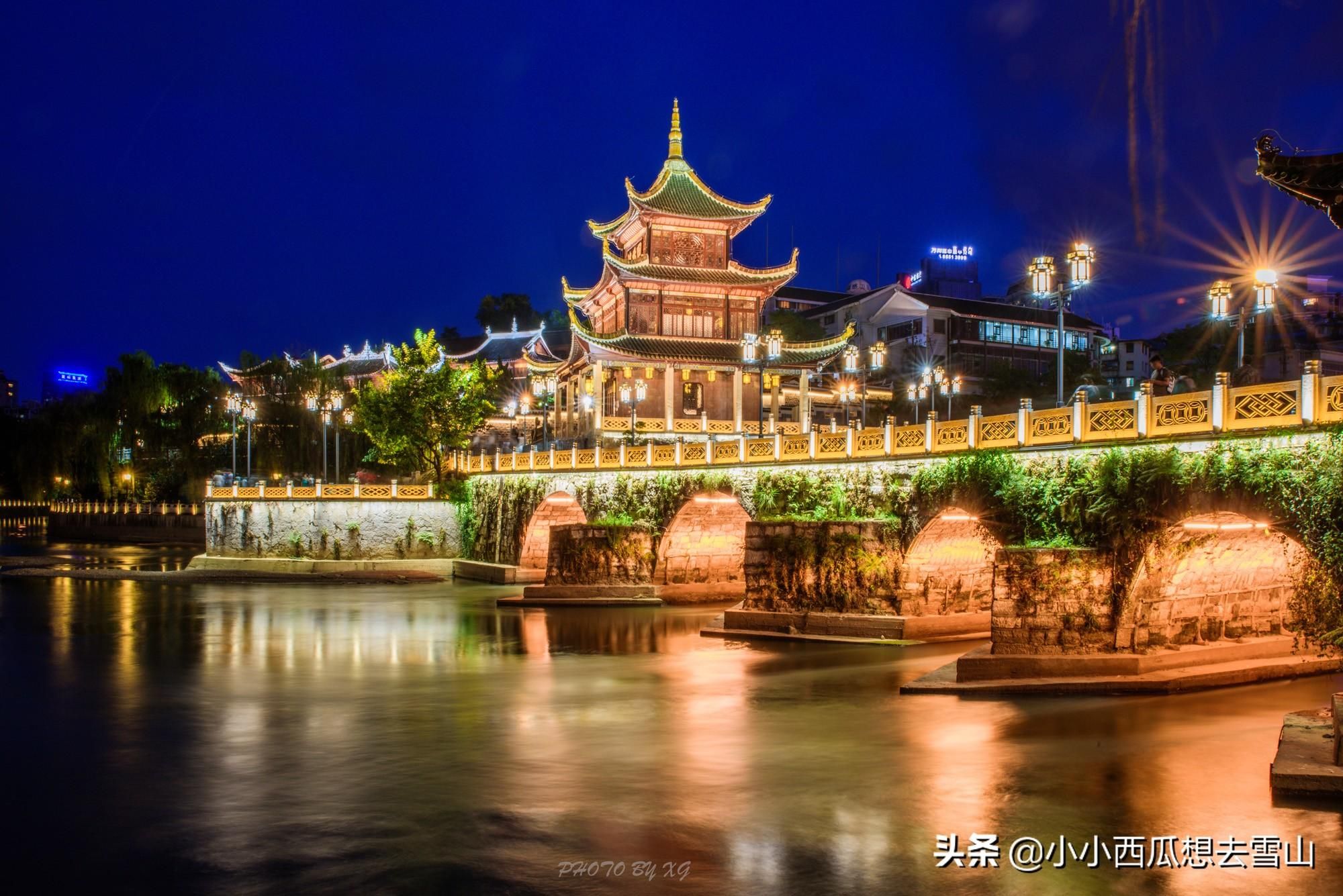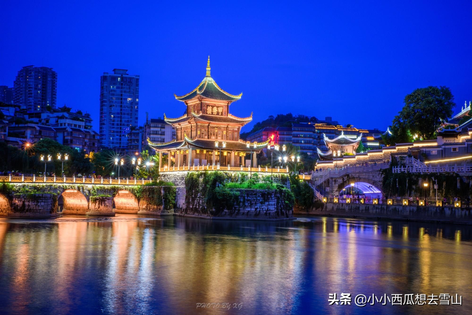 有人说白宫是贵阳的新地标,甲秀楼是贵阳老地标,但西瓜觉得这两个地标的景色完全不同,不可相比,甲秀楼是贵阳标志性的建筑之一,见证了贵阳几百年的发展,至今已有400多年的历史了。它是明朝末期建立的一个木质结构的阁楼,保存的还算是比较完好,后期也经过多次的修缮,甲秀楼就为于在贵阳的江中间,这里水很清澈,夜晚凉风习习,木阁高楼,使人心旷神怡。