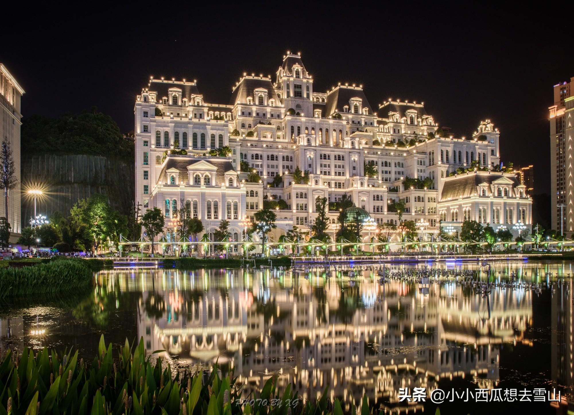 而大部分到这里的游客主要观赏花果园“白宫”,它是一栋欧式建筑,现在是贵阳新的地标性建筑,依山而建,特别是晚上开灯后,很漂亮。广场上聚集着很多本地市民唱歌、跳舞,非常热闹。