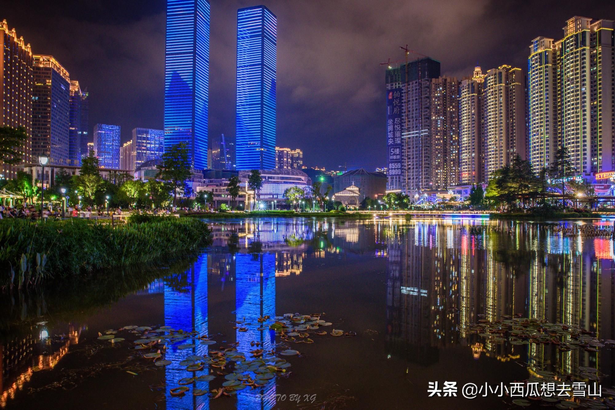 花果园湿地公园位于贵阳市的核心地带,它可以说是贵阳最繁华的地方,有着“小香港”的称呼,这里不需要门票,湿地公园在花果园大道路边,与购物中心、双子塔和白宫相邻。四周高楼林立,这里的夜景真的超级棒。