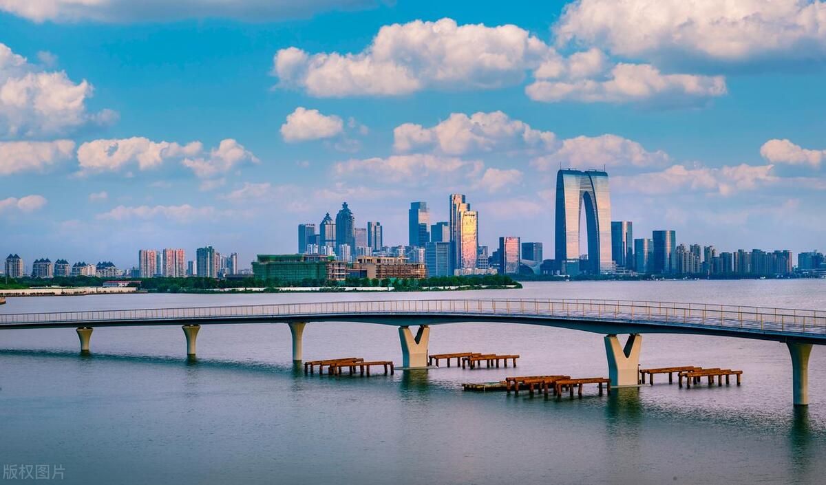 7、金鸡湖:超现代化的城市湖泊,周边有好多现代化的建筑和娱乐设施。