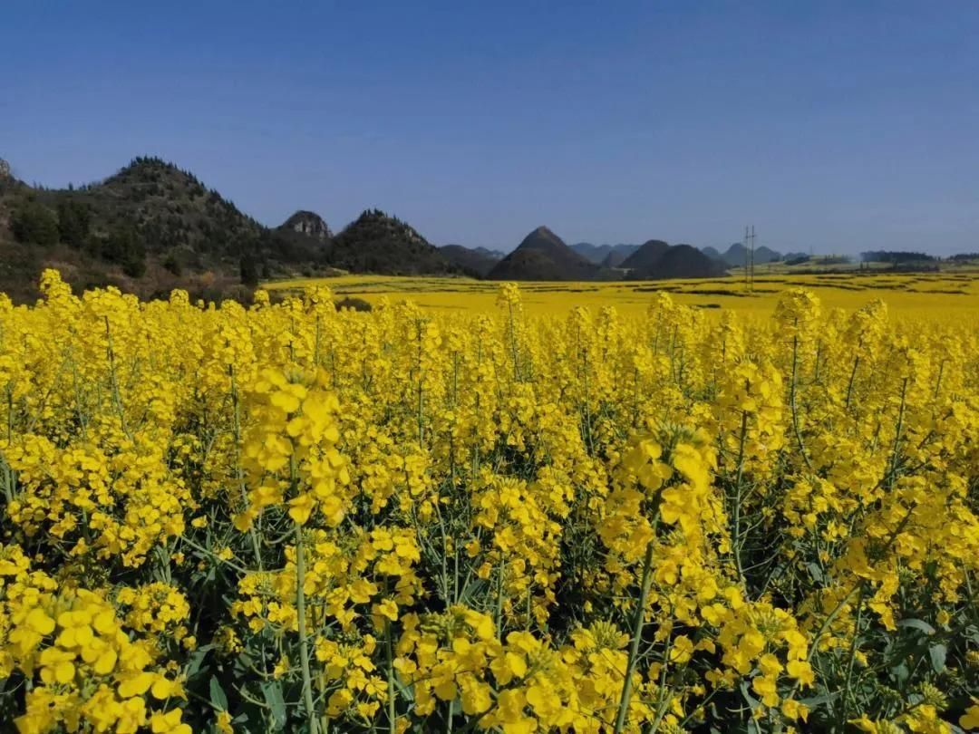 罗平县的油菜花田与当地的山水风光相结合,形成了一幅幅美丽的田园画卷,让人感受到大自然的和谐与宁静。