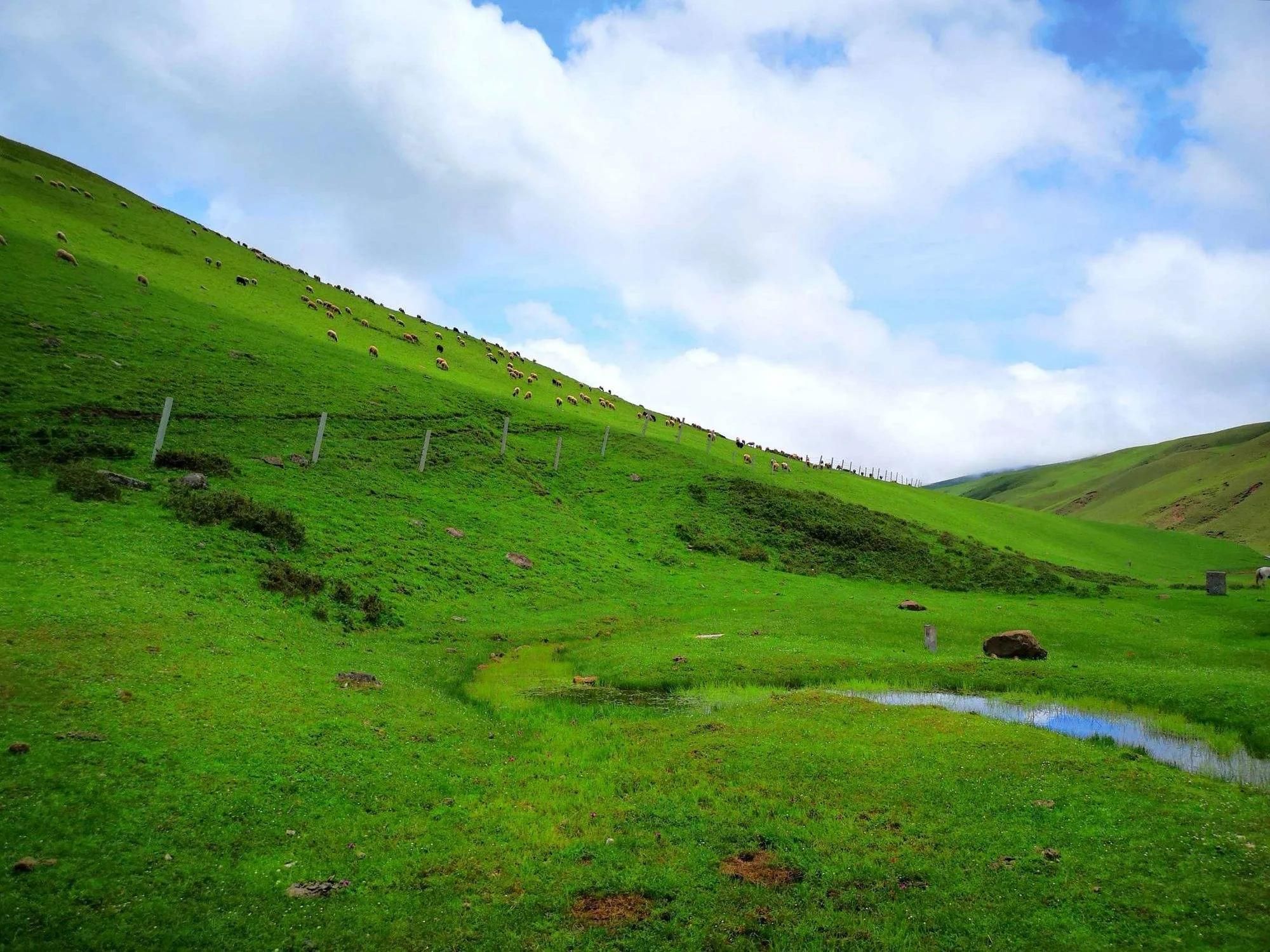 大海草山的山顶广阔,绿草如茵,野花遍地,与蓝天白云相映成趣,给人以强烈的自然之美