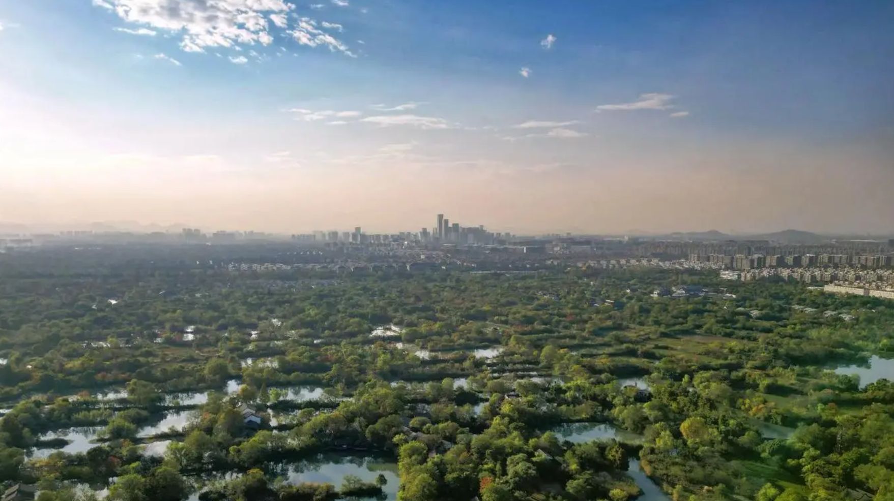 2. 西溪国家湿地公园:西溪国家湿地公园位于浙江省杭州市西湖区和余杭区西北部,距离西湖不到5千米。公园规划总面积为11.5平方千米,湿地内河流总长超过100千米,水域面积占总面积的70%以上。