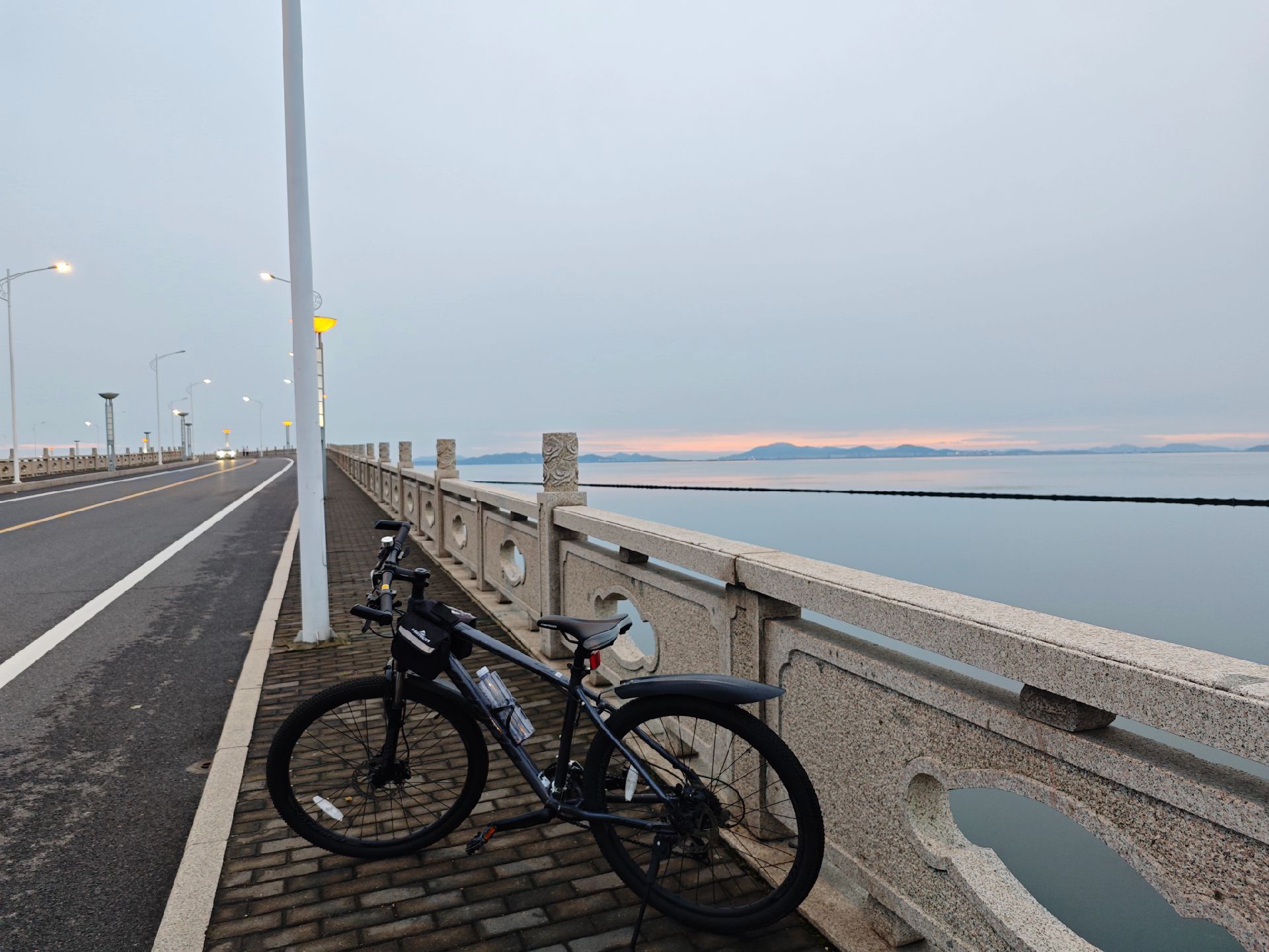 #骑行 #太湖 #夜骑 吴中诸胜,独爱太湖。昨天值班,今天中午下班后,突发奇想,要去骑东山,午睡后出发。苏州河湖众多,尤以吴中、吴江为众,可谓星罗棋布。我游的少,在我所到的湖泊中,澹台湖胜在宝带桥,金鸡湖胜在繁华,阳澄湖胜在宁静闲致,而唯太湖,以其缥缈浩瀚、气吞江海、群山万壑若隐若现而力压群湖,真可谓吴中第一湖。虽然是第三次骑行太湖了,可当真正到时依然不免为其所倾倒。在不同的时间骑行太湖均有不同的景色可观,第一次是在盛夏的夜晚,蝉鸣聒噪,所见不过路人摇扇松衣,夜幕中依稀可见太湖大桥,想着有朝一日一定骑上大桥一观景色。第二次是在春末夏至之时,可谓微风不燥,见太湖如见山海,如愿骑上大桥,西山,以其交错复杂的建筑风格深烙我心。这一次,是在梅雨时节,乌云压顶,西山晚照,绿野仙踪,环山路上的惊鸿一面,三山岛的若隐若现,陆巷古村的古韵寂静等等,无不给这场东山之行增光添彩。看到西山那一抹残照,我想到“落霞与孤鹜齐飞,秋水共长天一色”,简直不能再合适了。绿野之中是否有小精灵的足迹,如果有,他是不是也在高歌?环山路上行人如织,高处可揽太湖湖光山色,三山岛若隐若现,可谓“海上有仙山,缥缈云海间”。转角碧螺湾遇见陆巷古村,陆字是否与茶圣陆羽有关,若真是,可想,陆茶圣在碧螺湾用洞庭山极好的山泉水煮新鲜炒制的碧螺春,茶香飘万里,坐看太湖云波,真可谓浪漫至极!提到了浪漫,也不得不煞风景地提一提这一程的艰辛。本着中国人一以贯之的“有始有终、来都来了”原则,在环山路与启园路的路口,我没有选择抄近路,而是骑上了环山路,这也注定了后面的艰辛,但也收获了无限风光,以肉体之痛楚换心灵之愉悦,也不算亏,总的来说,有开心,有后悔,有汗水,这才是完整的一场旅程,可谓“行万里路,读万卷书”,如是而已!#户外骑行好city啊 #苏州