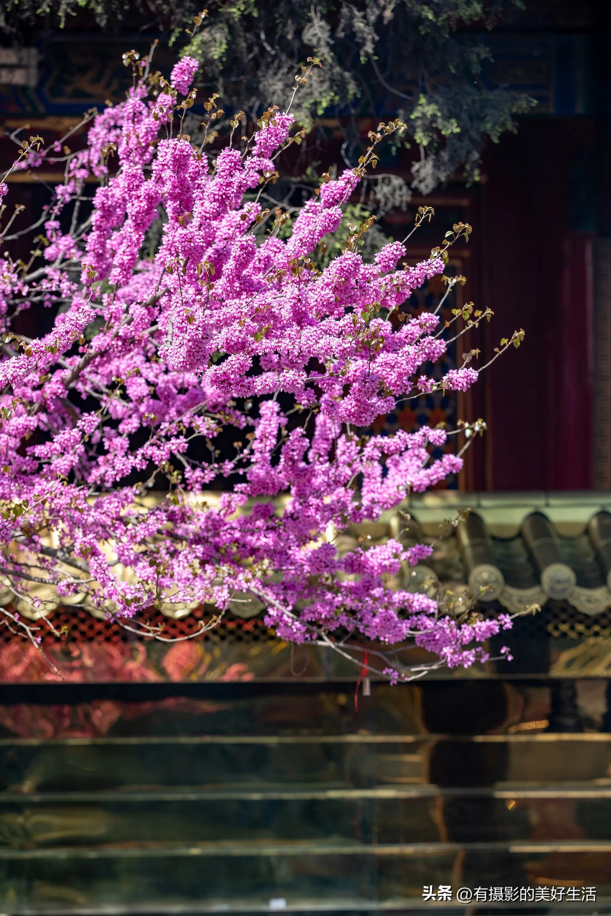 广仁寺的花:广仁寺的玉兰好看,但我去的时候,花儿好像都快些谢了,只看到了开放正鲜艳的紫荆,不少游客在这里纷纷拍照,寺庙里好看的传统建筑和各种花,成了最好看的风景。