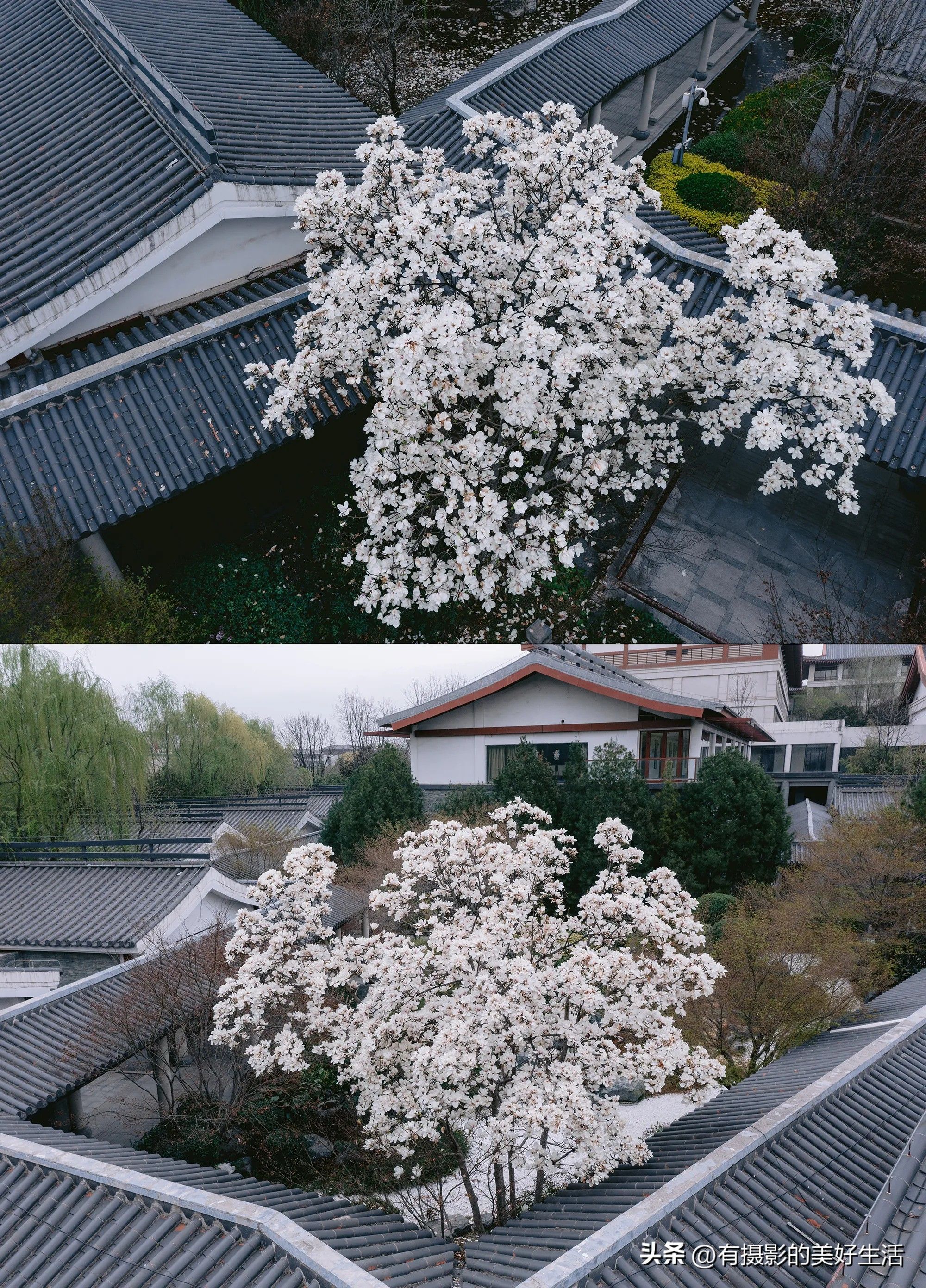 在临潼,西安临潼悦椿温泉酒店的花也很不错,这家酒店位于骊山下,毗邻鹦鹉寺公园,酒店园林面积很大,温泉区和几个庭院,都栽种了不少的花,有几株极为繁茂的玉兰花开,在亭台楼阁之间,还有垂丝海棠盛开,紫叶李花开也正好,还有红色梅花海棠花,也算得上姹紫嫣红。春季来临潼悦椿温泉酒店,不但可以泡温泉,还可以赏花,拍照打卡,一举几得。尤其是温泉区别墅私汤的院子里,垂丝海棠花开墙边,颇有几分意境。
