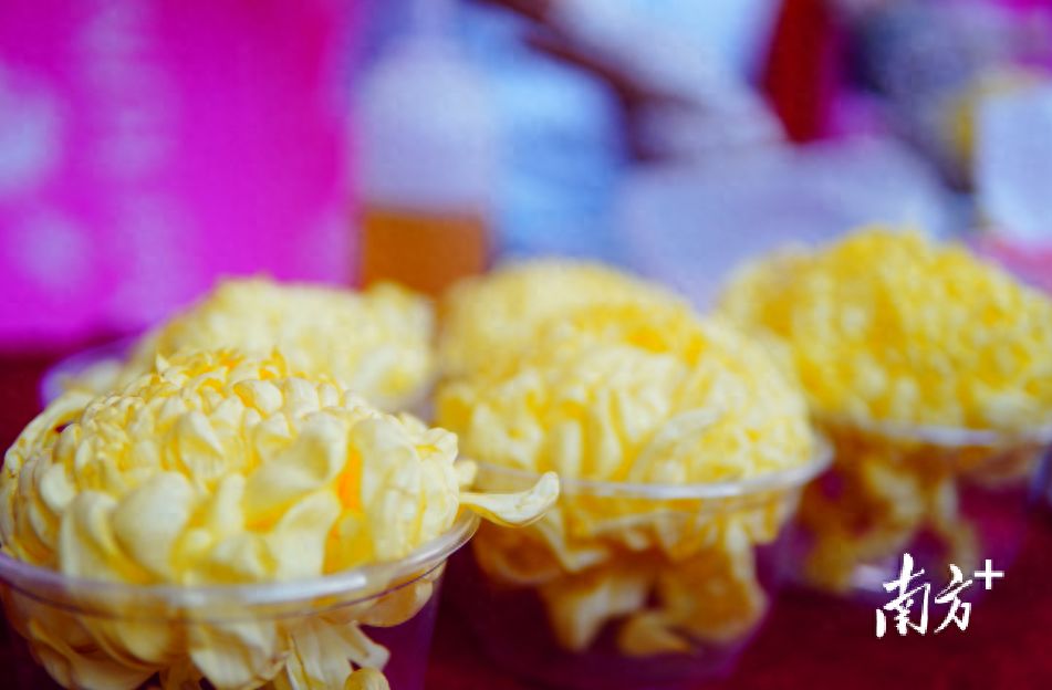 中山市博览中心美食展位上的菊花刺身。 南方+ 苏芷妍 拍摄