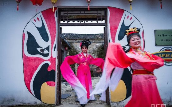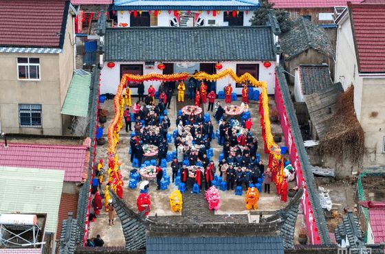 村子里挂满了大红灯笼,皖南花鼓戏的表演展现了乡村深邃且独特的文化底蕴。这个活动不仅祈求吉祥和幸福,也象征着长寿和安康,更是对中华民族优秀传统的延续。