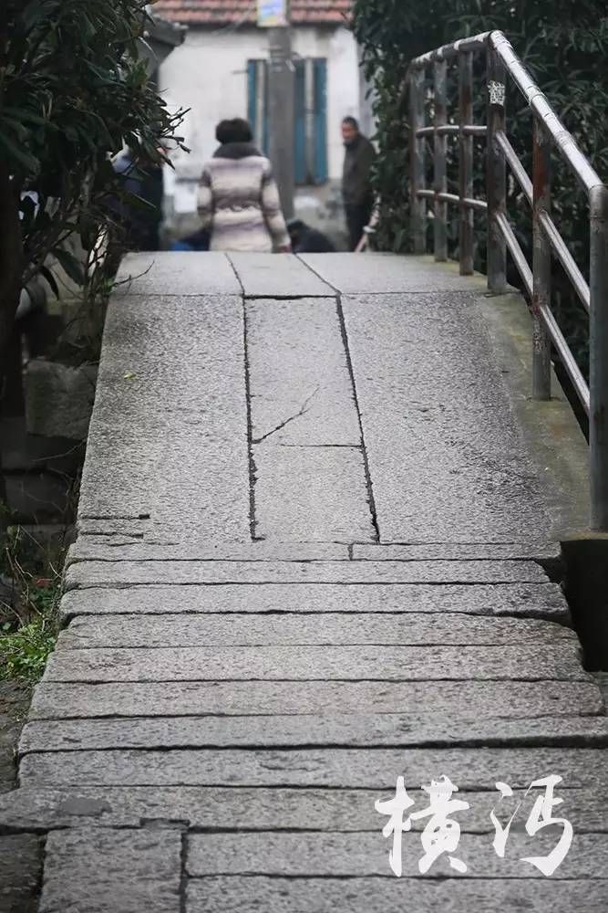蜿蜒曲折的三座桥连接了河西街、中大街、庙场街和花园街。依次走完三座桥,对横沔老街便有了大致印象。从河西街穿过沔溪第一桥,便是中大街了。沔溪第一桥早已不复往日模样,翻修过的石板桥与浦东村间的大多数石板桥相似——粗砺的水泥桥面和简单的铁栏杆扶手,只有桥东头的两块长条石板,能够依稀看出昔日色彩。