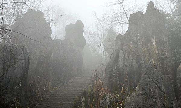 美女峰在乐山市沙湾区,是国家级森林公园,美女峰最闻名的就是它的石林景区,各种千奇百怪、形态各异的石头,全都是大自然的鬼斧神工,徒步至山峰观景台,极目远眺,天气晴朗的时候,还可以看到峨眉山,没有太阳的时候山间也是云雾缭绕,自有一种朦胧美。
