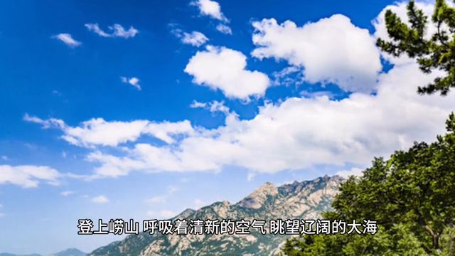 3. 崂山:海上第一名山,山海相连,景色如画。奇峰异石,清泉飞瀑,让人陶醉其中。登上崂山呼吸着清新的空气,眺望辽阔的大海,所有的烦恼都会烟消云散。那美丽的自然风光让人仿佛置身于仙境之中。