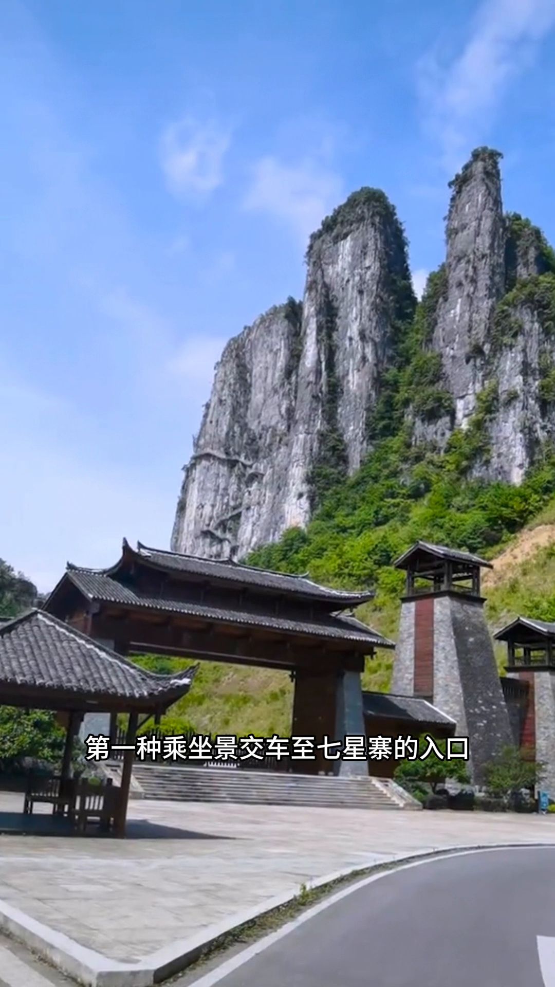 - 第一种乘坐景交车至七星寨的入口徒步上山。