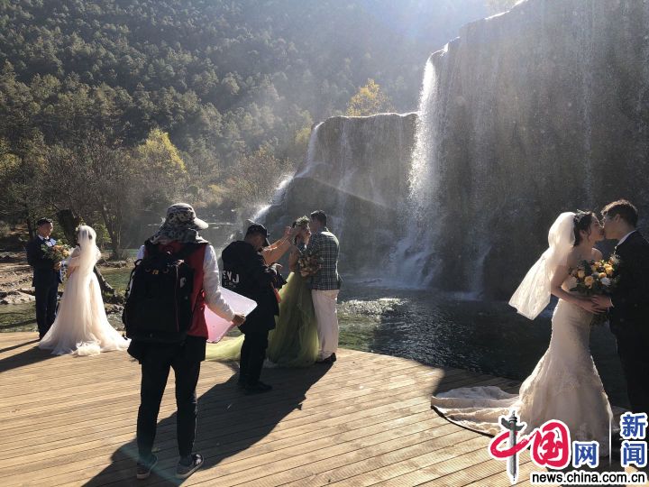 蓝月谷景区吸引了全国各地的新人前来拍摄婚纱照。 中国网记者严星/摄
