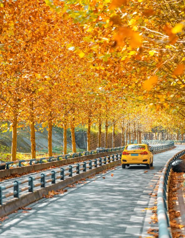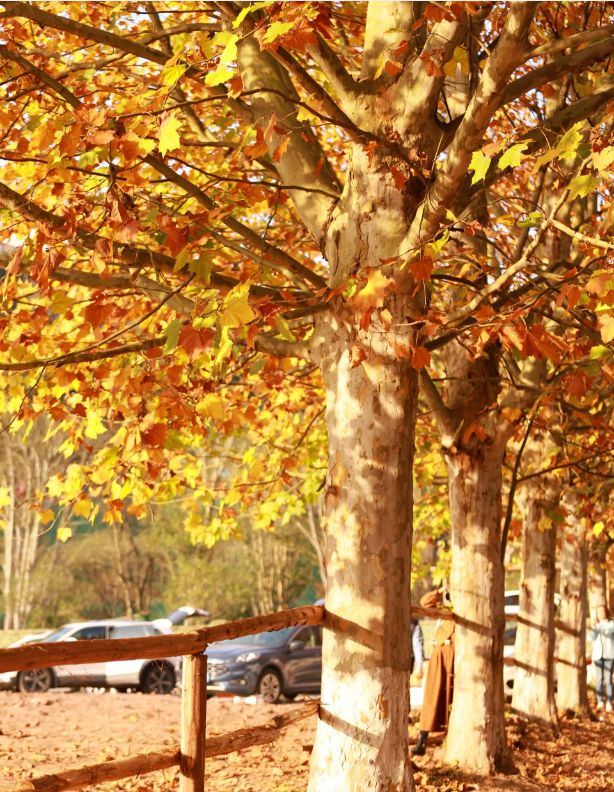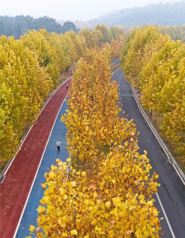 整个梧桐树林像一条金色大道