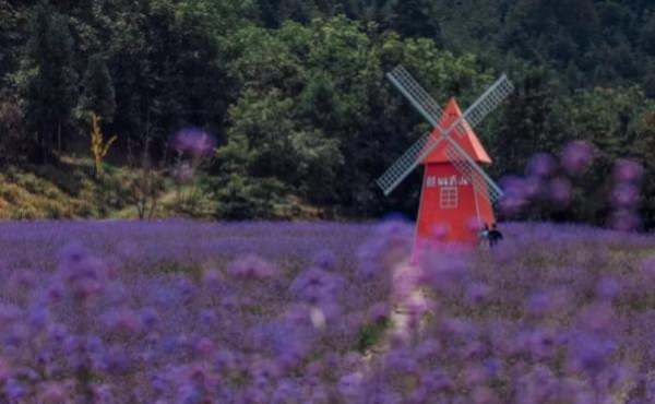 熊猫香山的风情马鞭草花海,集梦幻与浪漫于一体。一大片紫色马鞭草、远处的风车,仿佛置身于北欧的神秘庄园~