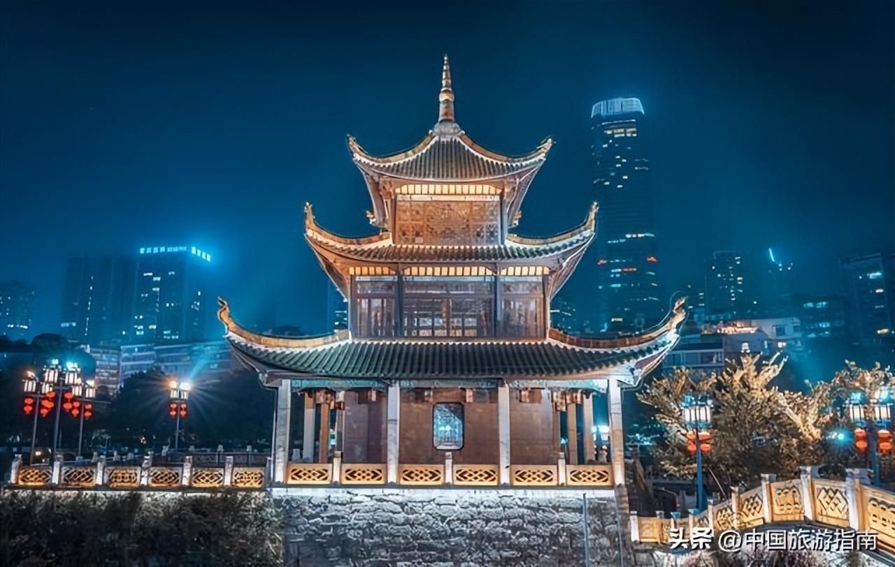 甲秀楼是贵阳的地标性建筑,位于南明河上。楼前的桥梁和周围的景色相得益彰,尤其在夜晚灯光璀璨的时候,更是美得无法形容。