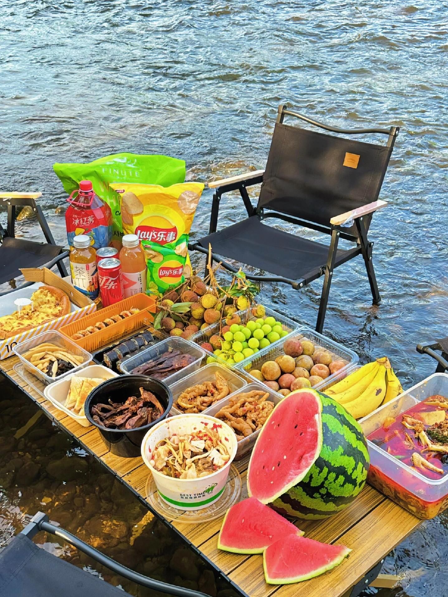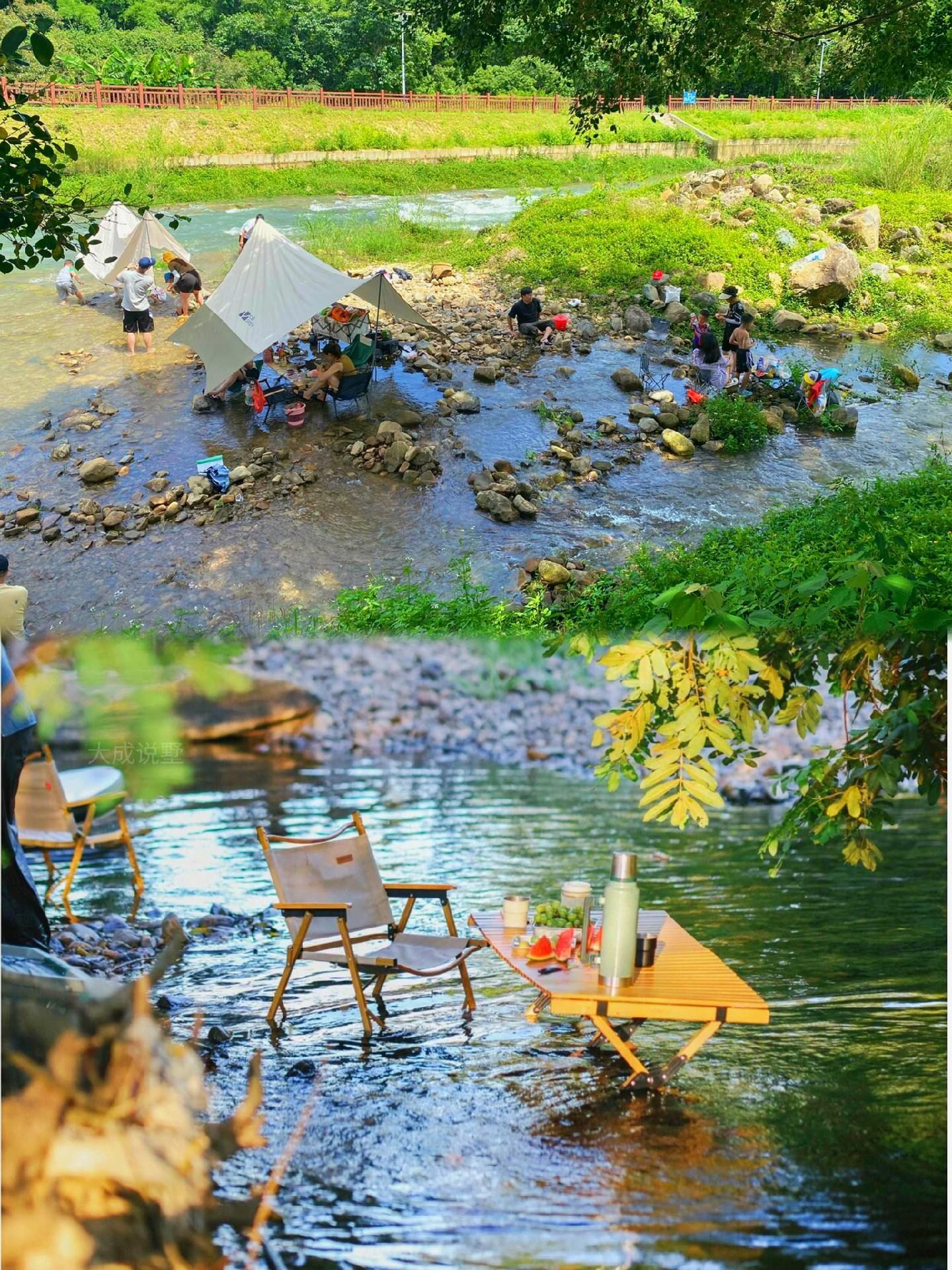 河边或下游有一些浅滩,超适合露营的,搭个蛋卷桌,提前带点好吃好喝的,一边玩水一边吃美食(记得收拾好垃圾哦)