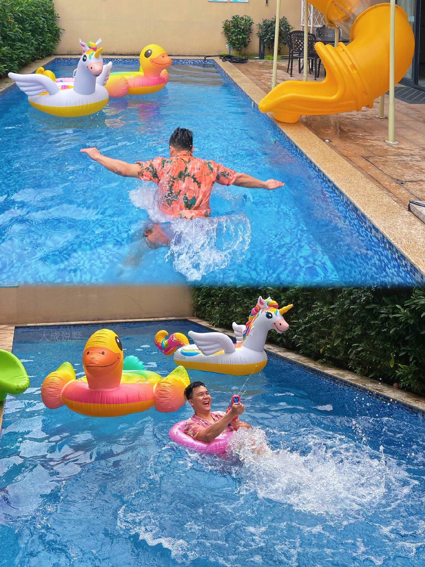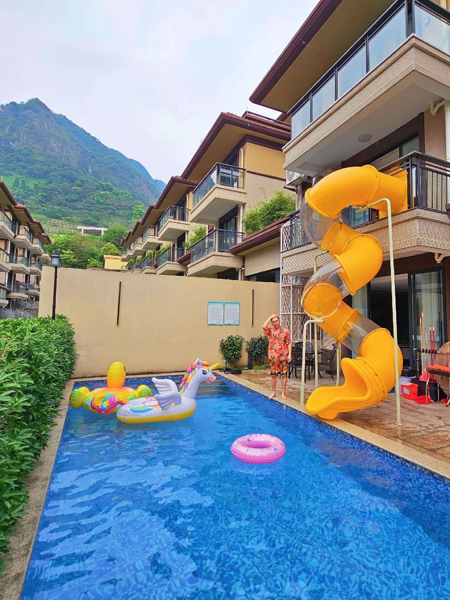 我们是几个家庭出来游玩的,选了一间三英的滑梯泳池别墅,有4-6房,我们住了一间6房的,品质非常不错,有私家的滑梯泳池,晚上回去后依然可以玩水滑滑梯,别墅支持KTV唱歌,花园烧烤,打麻将,还有儿童波波池乐园。别墅离白水寨、森林海等好多景区都很近。