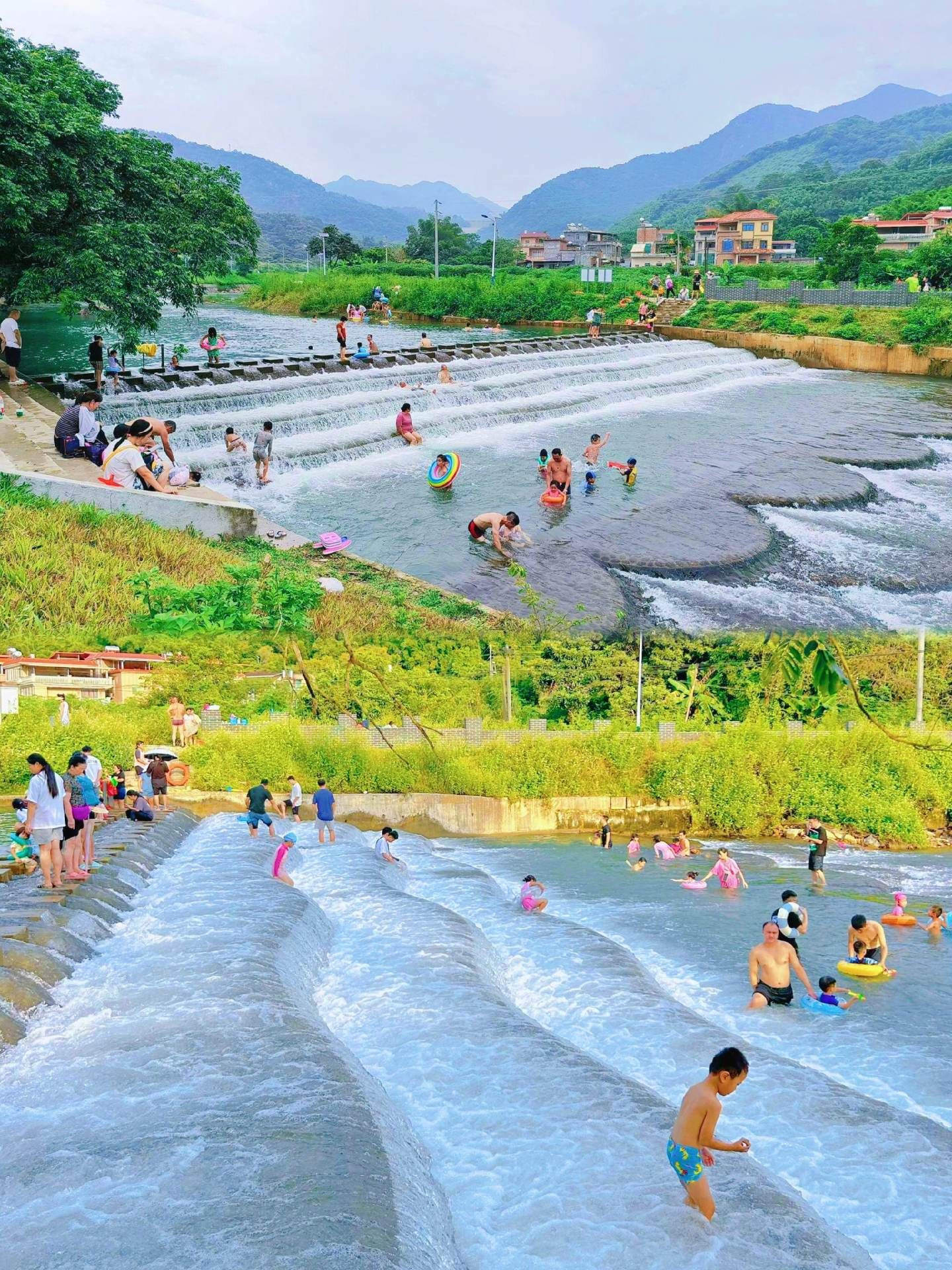 天晴了雨停了该出来旅行了每年都要来的一个夏日避暑玩水地就在广州增城派潭背阴村可以免费溯溪玩水搭桌子露营吃瓜附近还有大型水上乐园住宿还有滑梯泳池别墅随处都可以尽情玩水夏日出游的宝子们冲