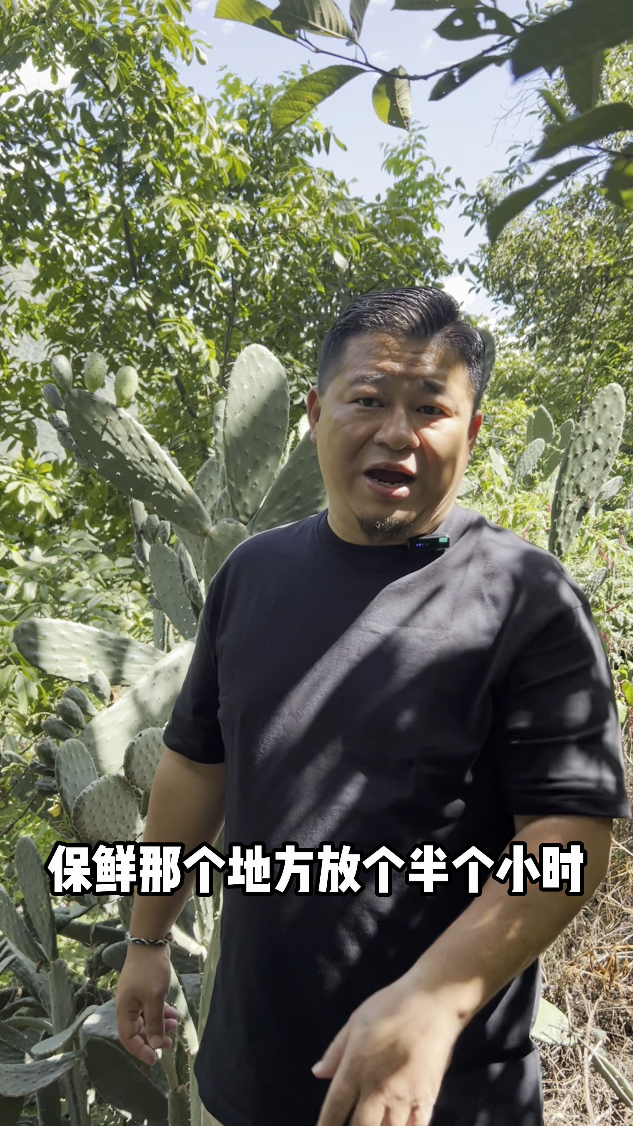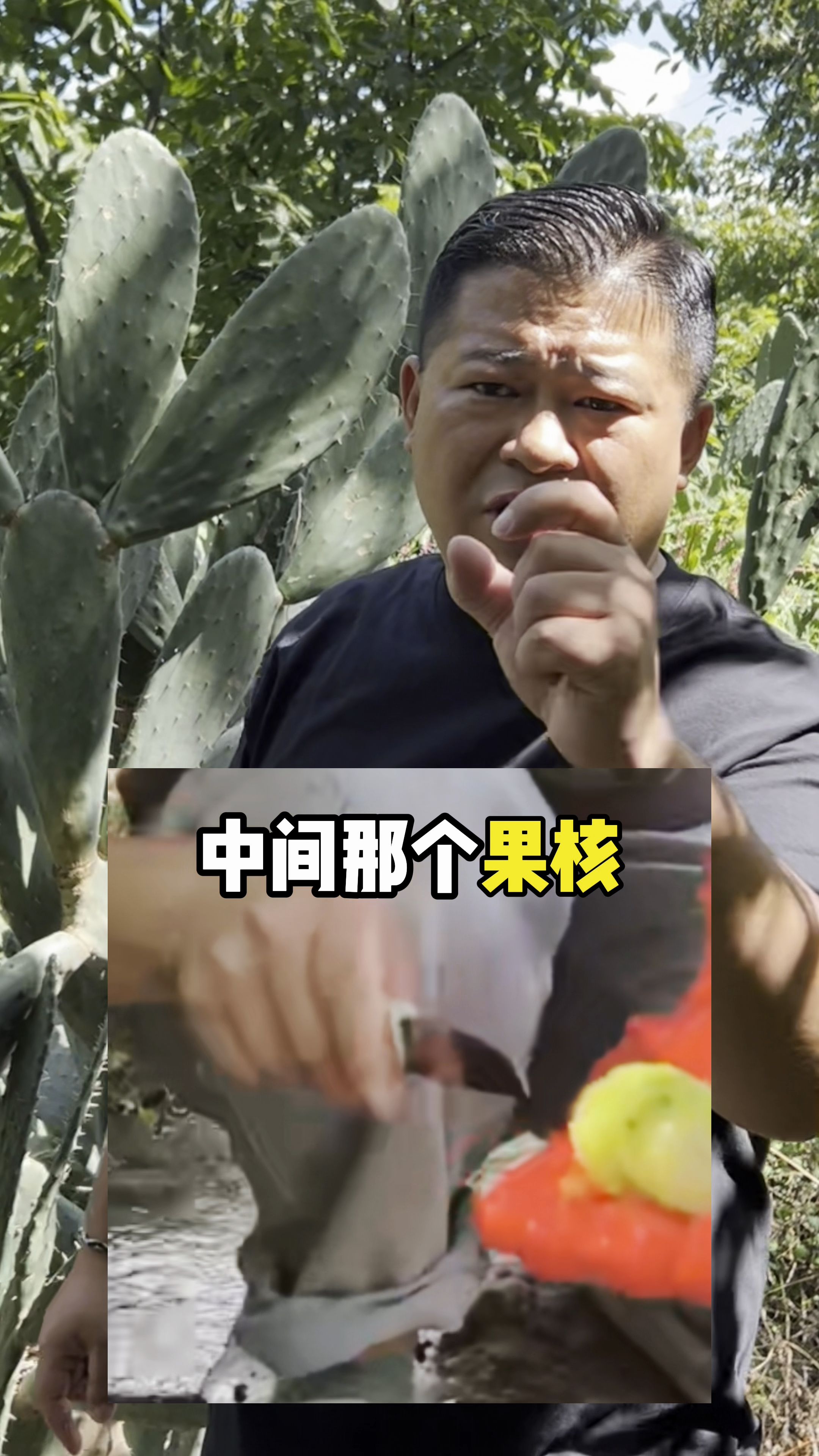 我就这儿,我知道这个东西凶得很的。以前我视频头说过,拿手摘,有些瓜得很,皮皮都不剥,一口满嘴毛。看我嘴巴没?就只有山上去摘点仙桃吃。仙桃跟你嘴巴有什么关系?晒伤了。芦荟拿来做什么?仙桃也差不多。仙人掌高头长的果,外头(的人)好多见都没见到过,带你们去看下子去。