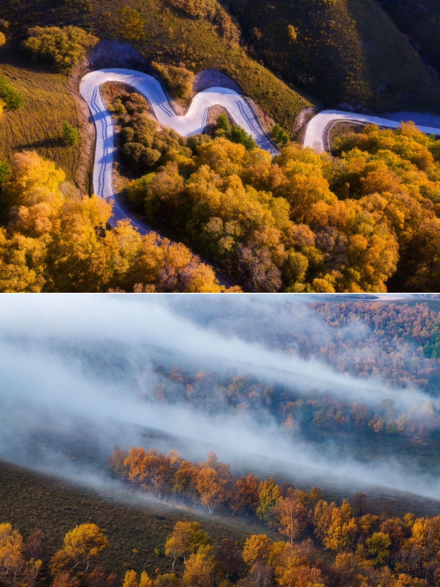 白桦岭:满目皆是白桦树的灿烂金黄,与花楸林交织的五色斑斓。