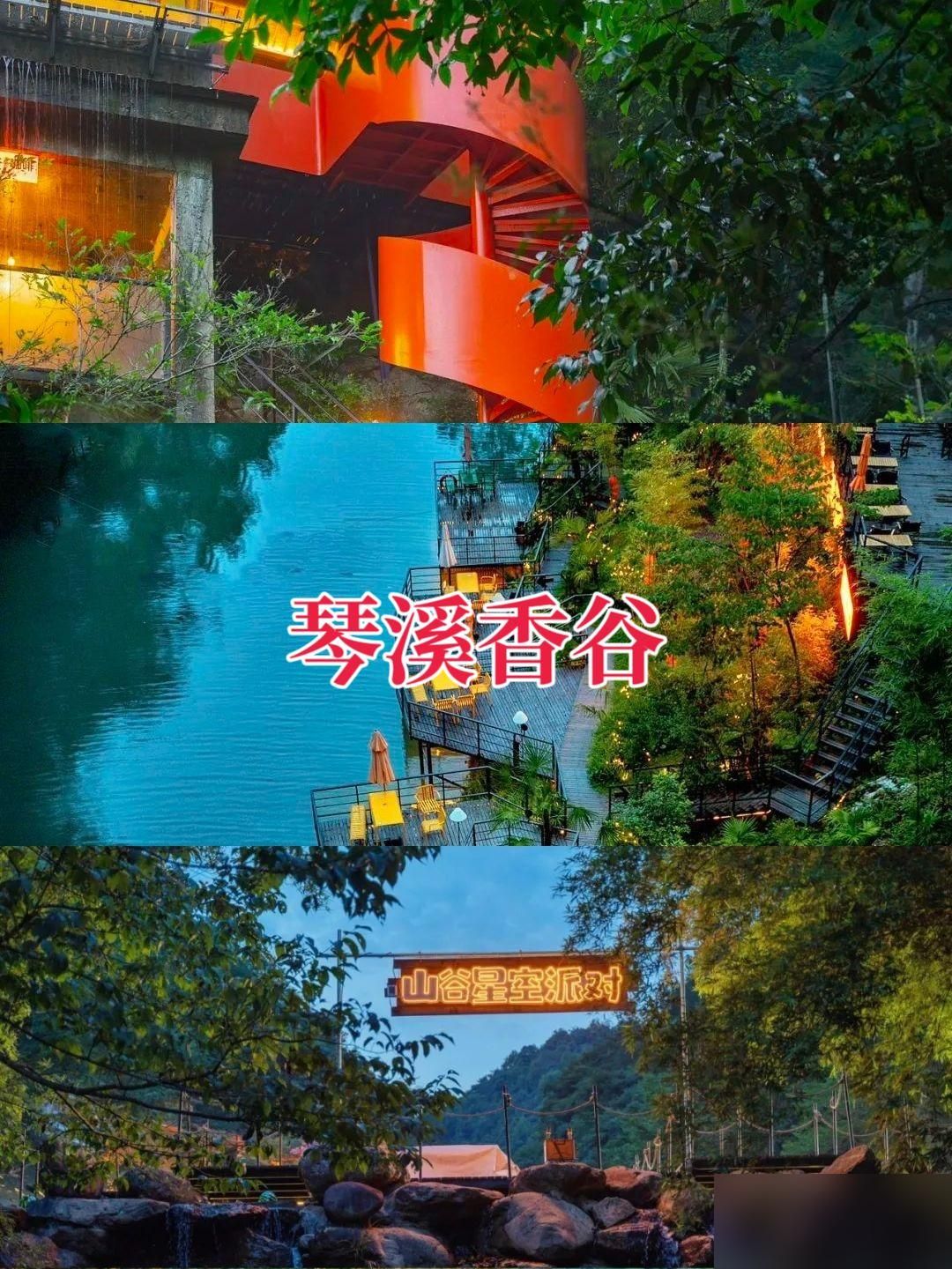 如果说白天的琴溪香谷是悠闲的小憩站,那么夜晚,它摇身一变成为活力四射的派对现场!山谷音乐会、星空露营是夏日难得的惬意;可以在山脚下的树下茶馆,坐着竹制的桌椅,喝一杯茶,感受山野慢节奏生活;“日咖夜酒”的瀑布咖啡馆不管是拍照打卡还是观景体验,都充满格调。
