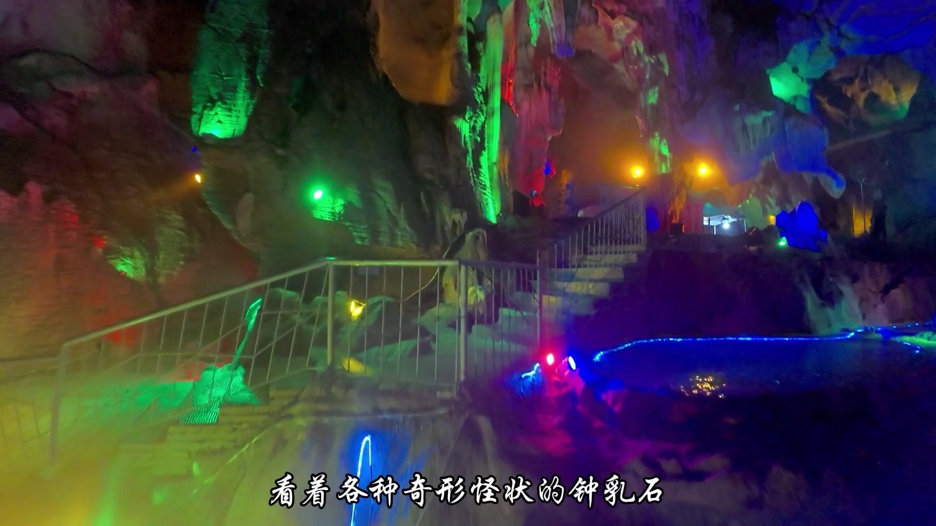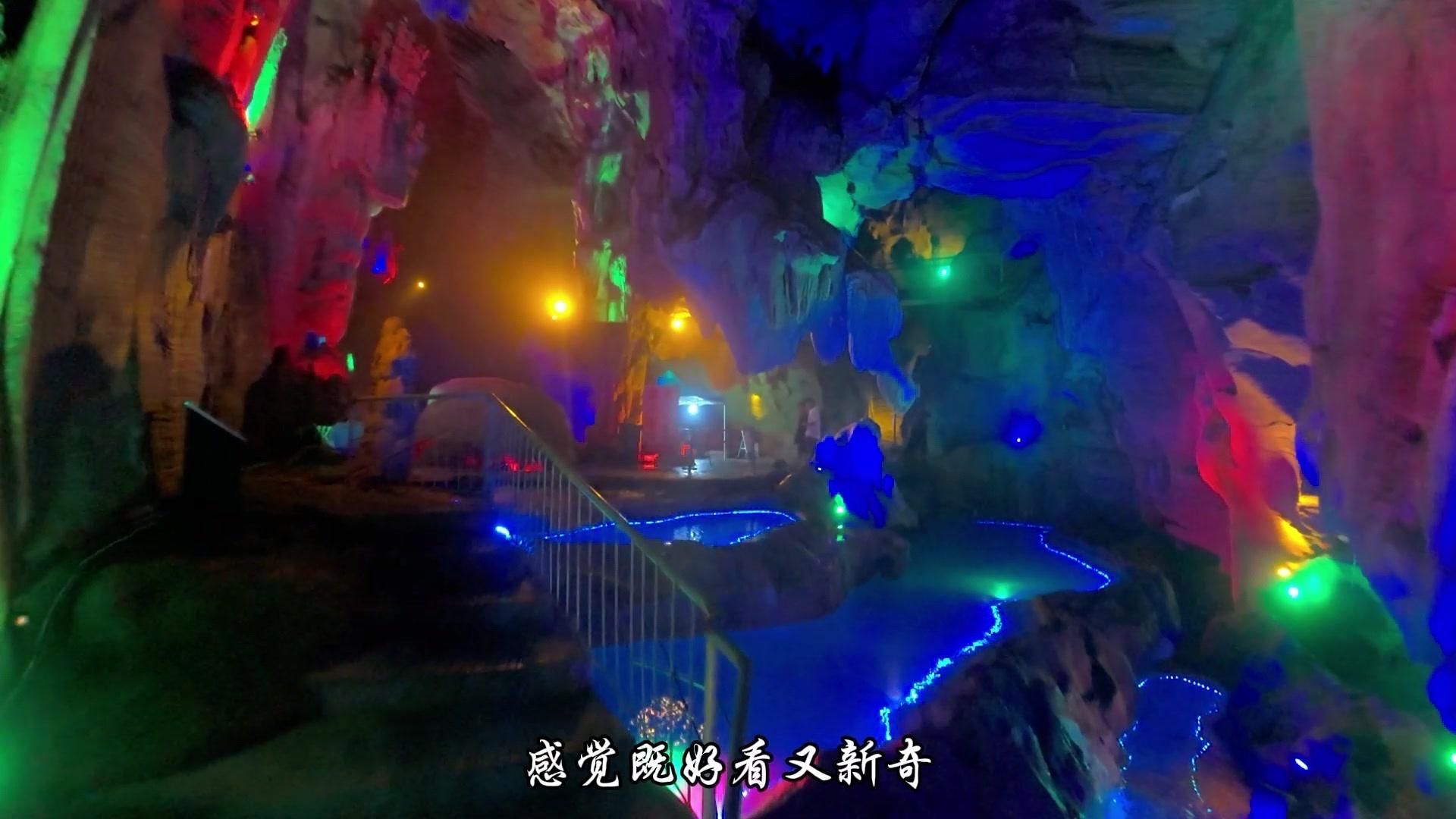 看着各种奇形怪状的钟乳石,配合着七彩的灯光,感觉既好看又新奇。