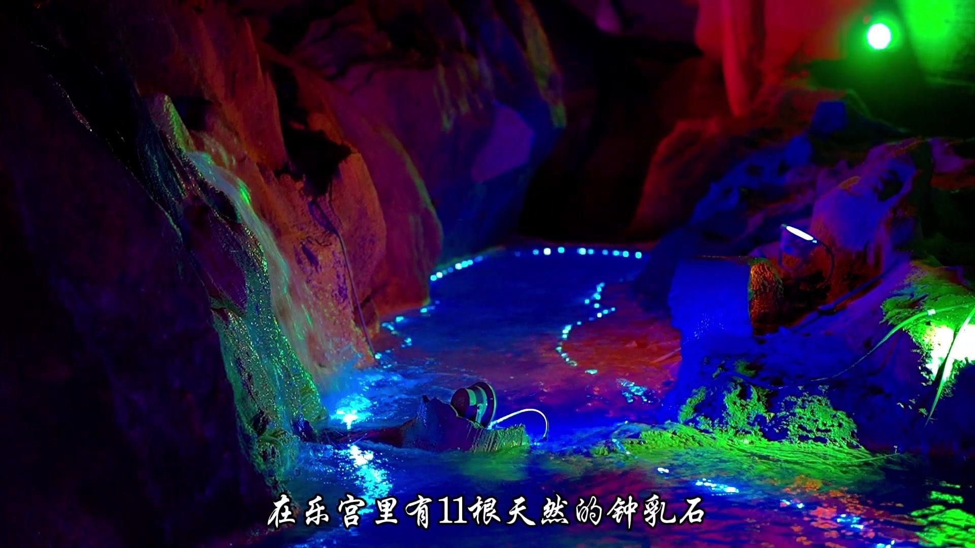 在月宫里有11根天然的钟乳石,据说这些以钟乳石以修成灵性,能通音律,可以发出一般人造编钟演奏时常用的基本音节。