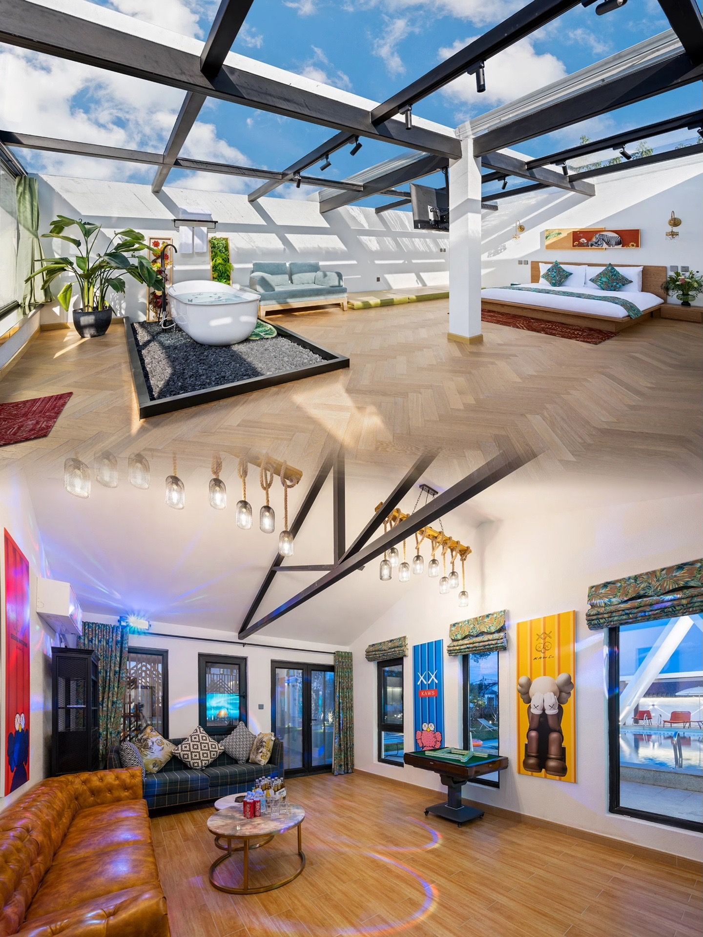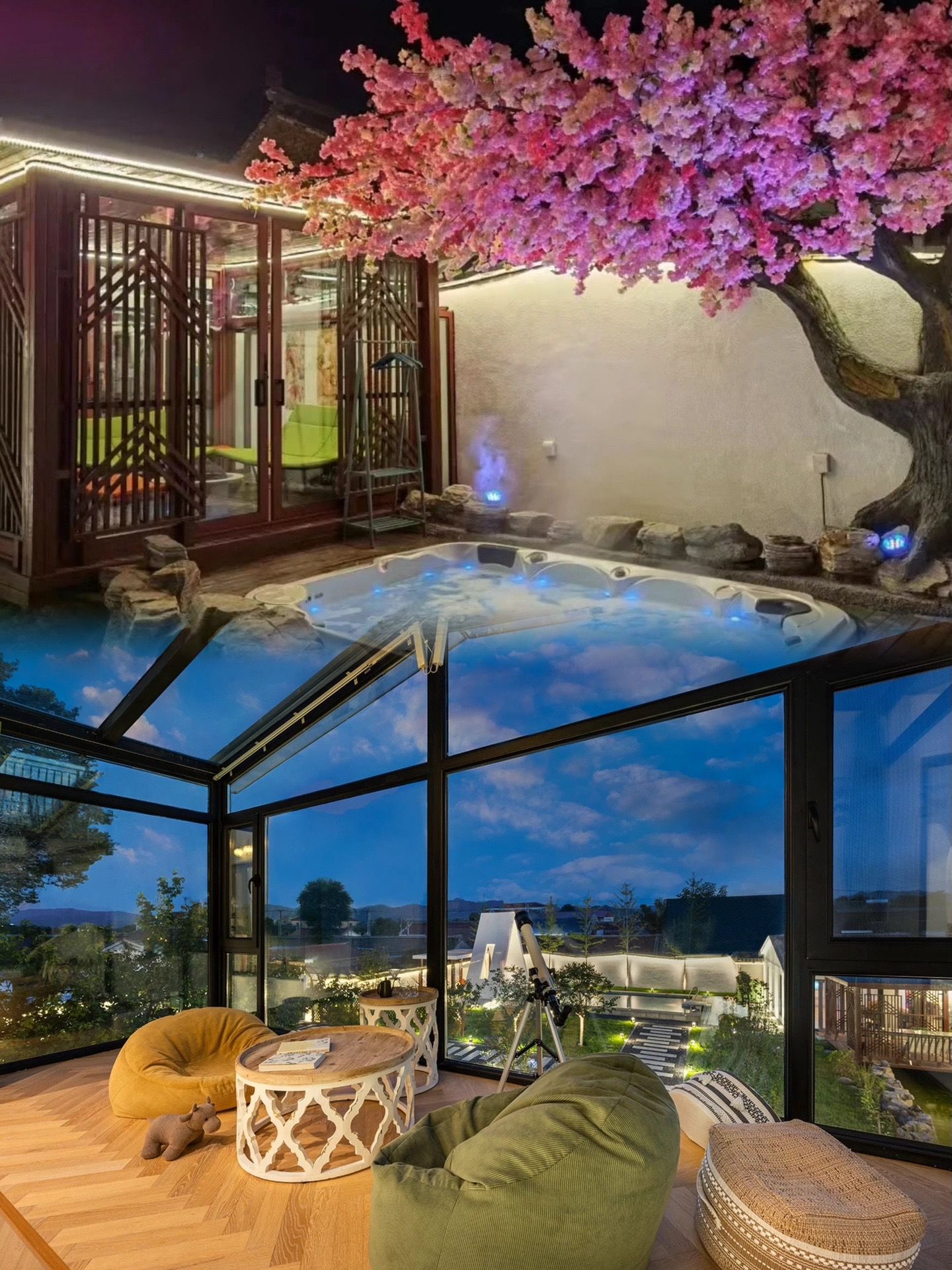 亲近自然:超大户外草坪成为亲子乐园和花卉园艺的绝佳场所,让你在欣赏美景的同时,享受亲子时光。私汤、庭院泳池、会议室、KTV室等娱乐设施应有尽有,让你在这里尽情放松身心。