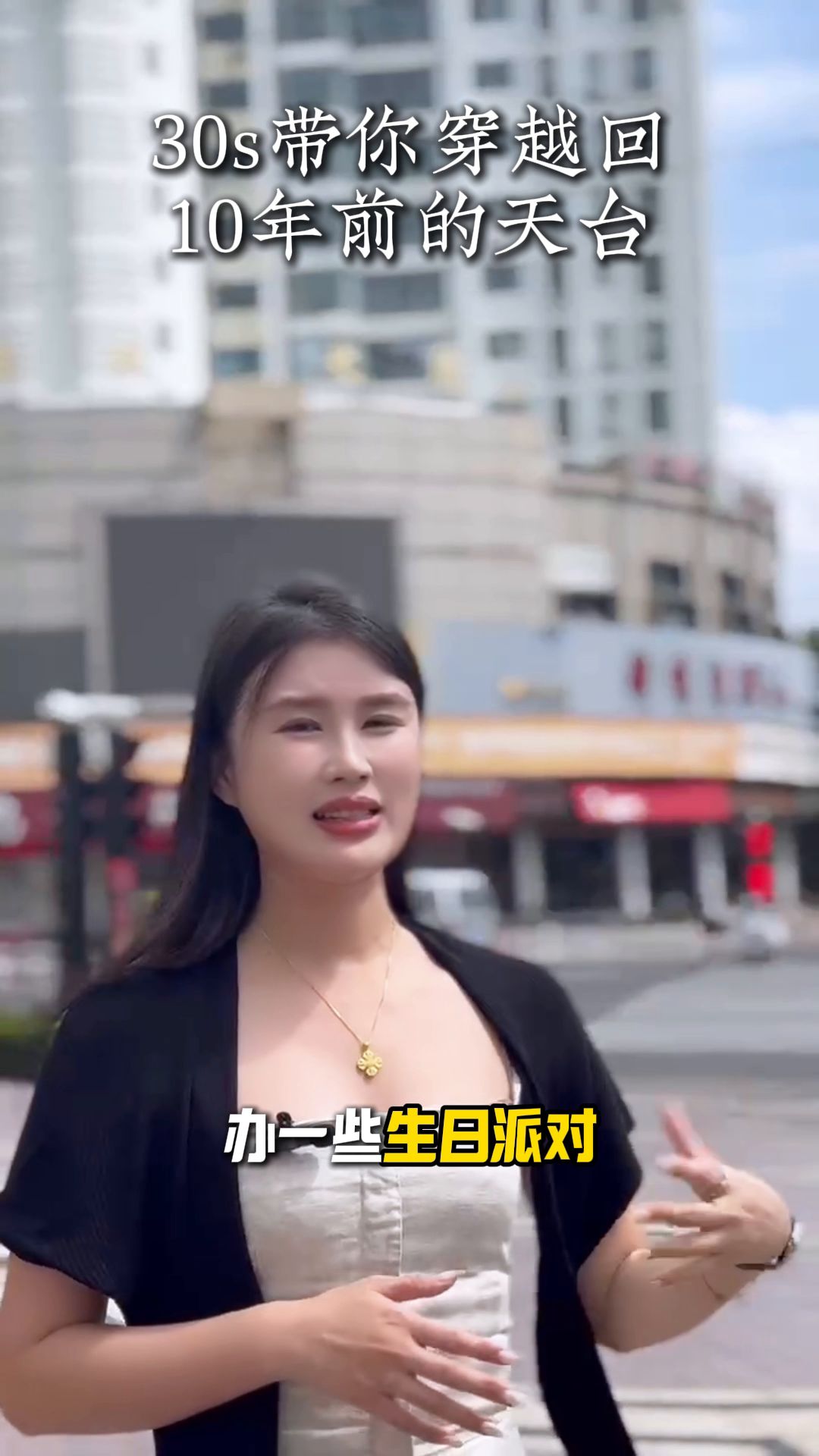 5. 看到我身后的这家肯德基了吧?它是天台的第一家肯德基。我记得很清楚,十多年前如果谁的爸爸妈妈能够带他来吃一顿肯德基,可以高兴很久,然后到班里面去炫耀很久。包括读书的时候经常去肯德基办一些生日派对,都是很有面子的。而且后面的赤城大厦也是以前最受欢迎的商场。现在随着天台的发展,很多商场都兴起之后,这个地方也没有像以前那么的繁荣了。