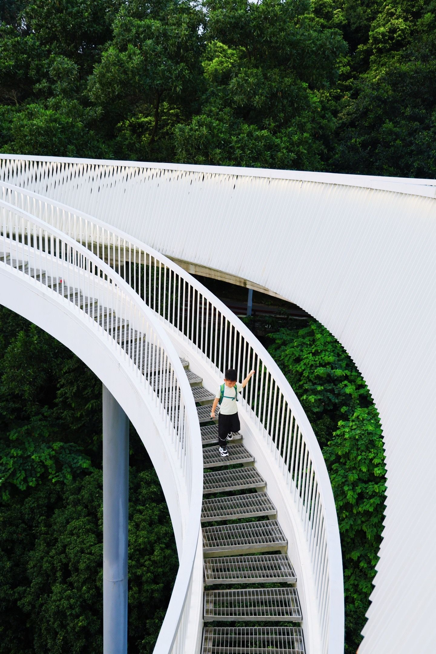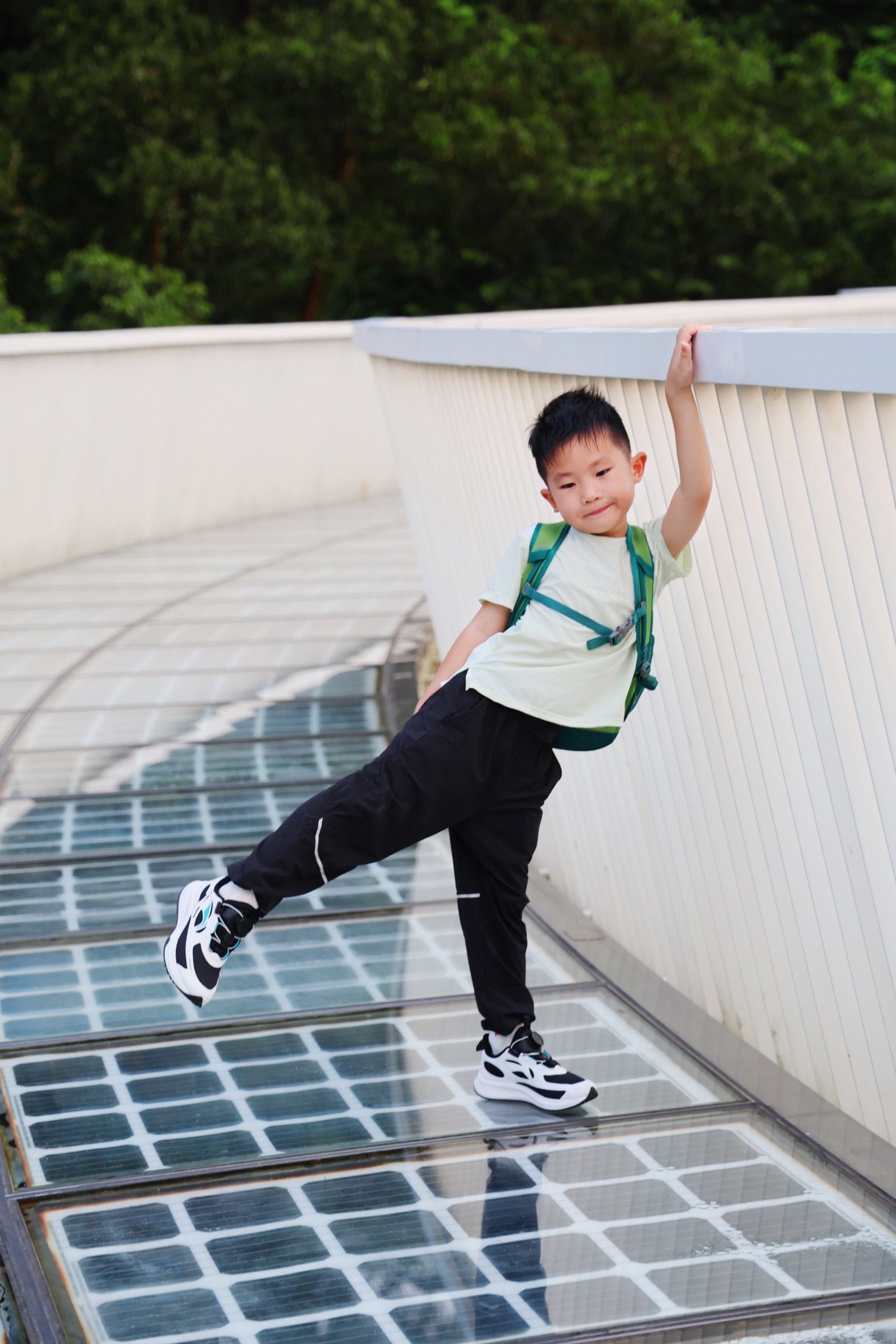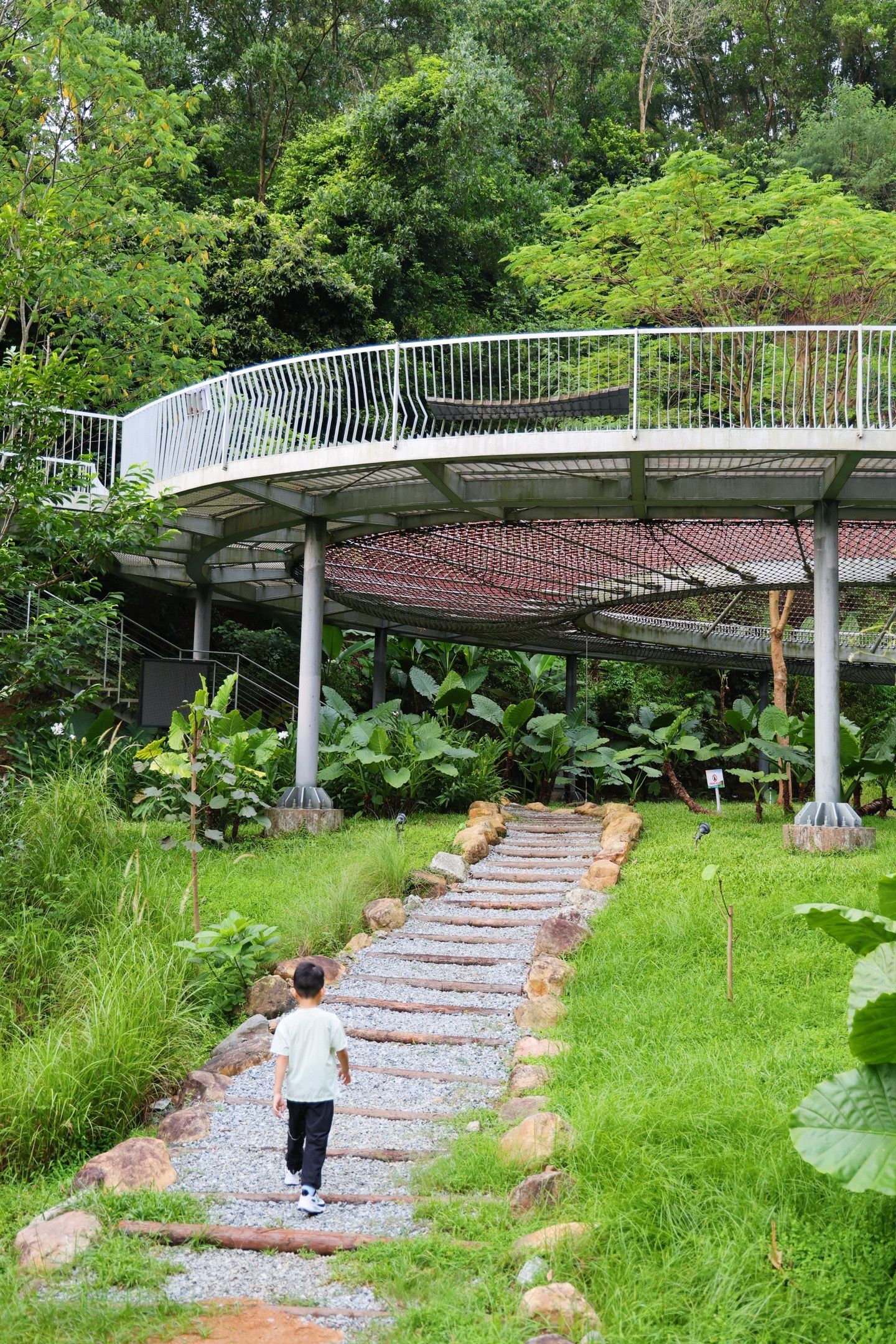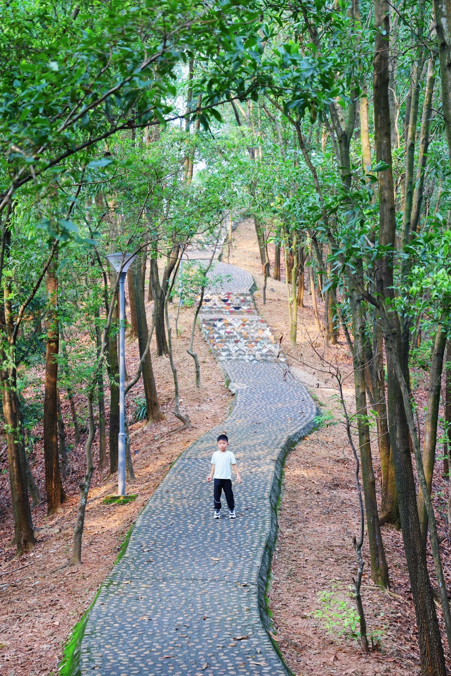 这里是光明的大顶岭绿道,全场6.4km,主路基本平坦的路面,不伤膝盖,对亲子比较友好,一路上会经过三座桥,依次是浮桥、探桥和悬桥