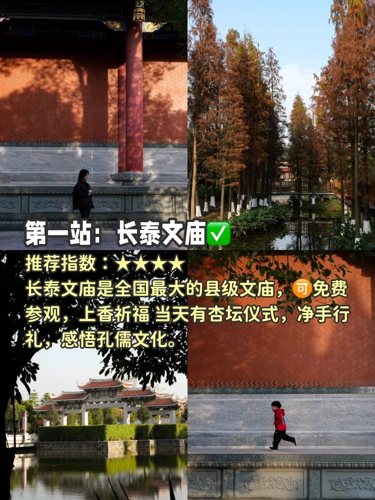 长泰文庙是全国最大的县级文庙,免费参观,上香祈福 当天有杏坛仪式,净手行礼,感悟孔儒文化。
