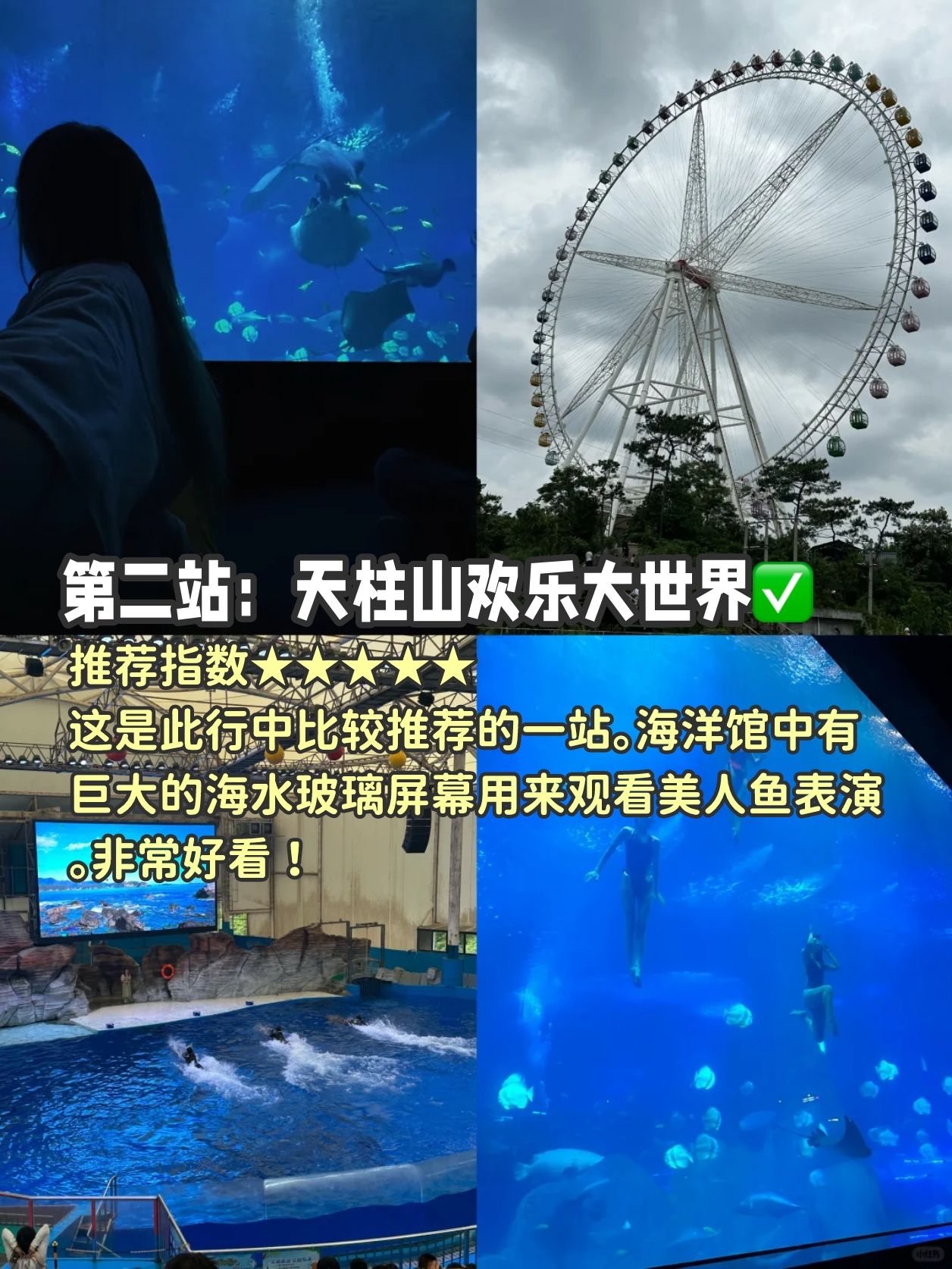 这是此行中比较推荐的一站。海洋馆中有巨大的海水玻璃屏幕用来观看美人鱼表演。非常好看!