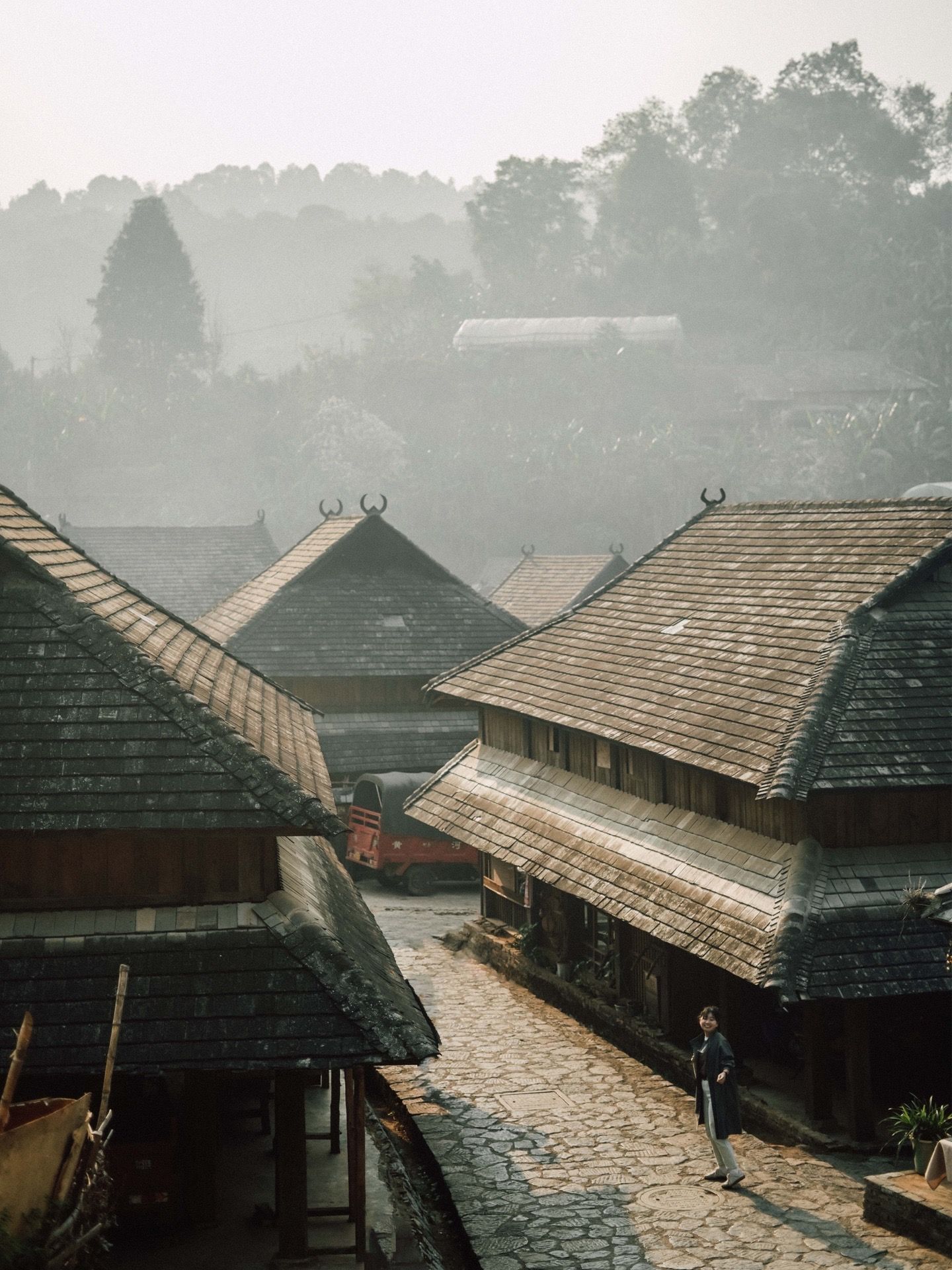 我是早晨的时候来到这个古寨的,烟雾缭绕,屋角就像是燕子的翅膀,村庄古朴又整洁,眼里看不到一根电线。