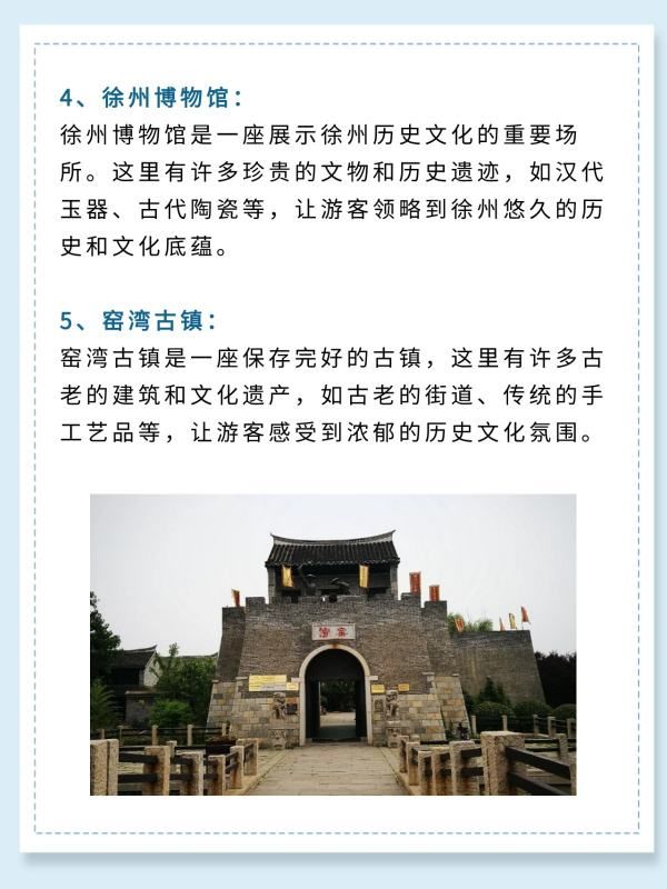 总之,除了上述景点,徐州还有许多其他的文化遗址和自然景观等待游客去探索。无论是对历史文化感兴趣,还是喜欢自然风光,徐州都能提供丰富多彩的旅游体验。