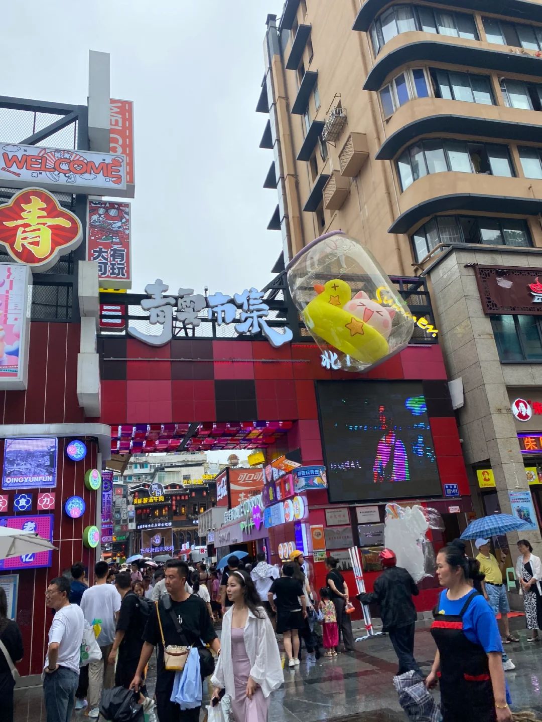 8、青云市集是个赛博朋克风的美食小吃街,里面价格偏贵,但是肠旺面和烤鱼值得推荐!