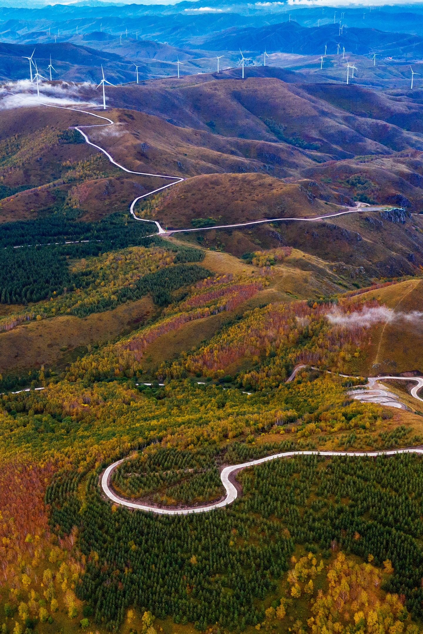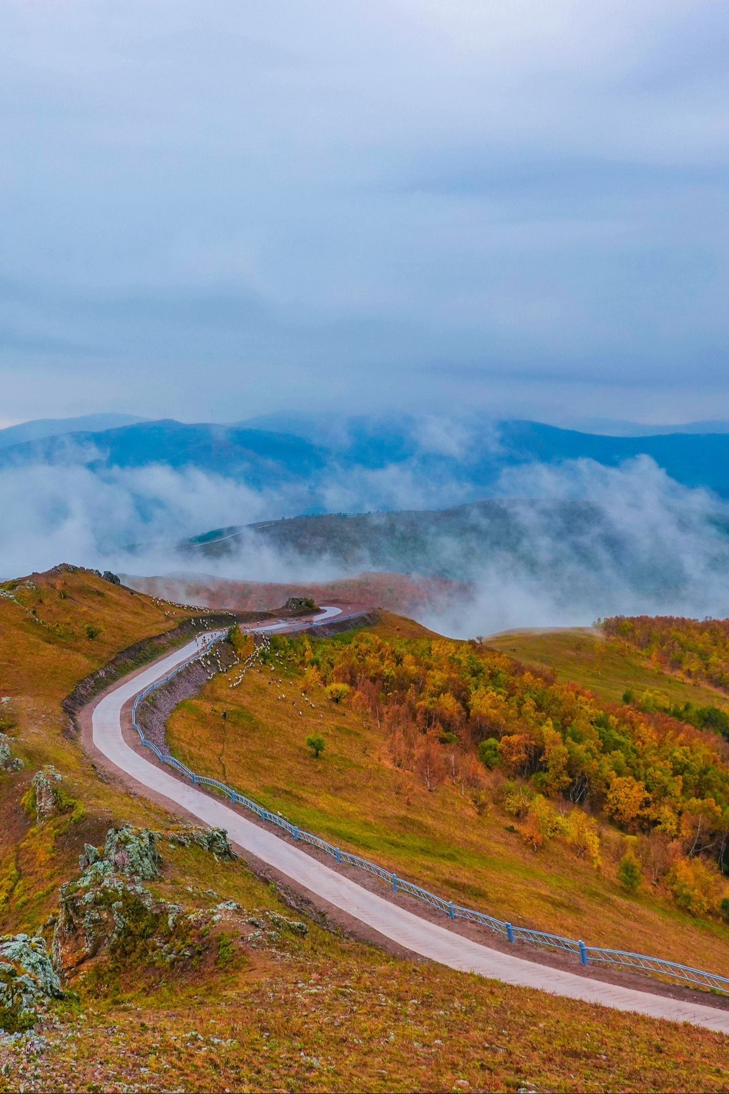 百里天路就像一条巨龙横卧在平均海拔1982米的群山之颠,全长100公里,这里天似穹庐、云欲擦肩,到了秋色正浓时,整个草原天路都是金灿灿又多姿多彩的,色彩非常饱满,仿佛行走于五彩斑斓、如梦如幻的原始画卷中。不可错过的打卡点:百花坡、骆驼峰、天地T台、黄花顶、流云岭、风车伴桦、农田花海、白桦岭、茶盐堡、天之尽头、榛树岭。