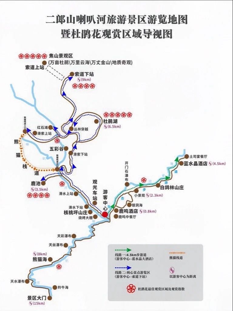 景区呈Y型分布,推荐分两天玩耍,地图见图末