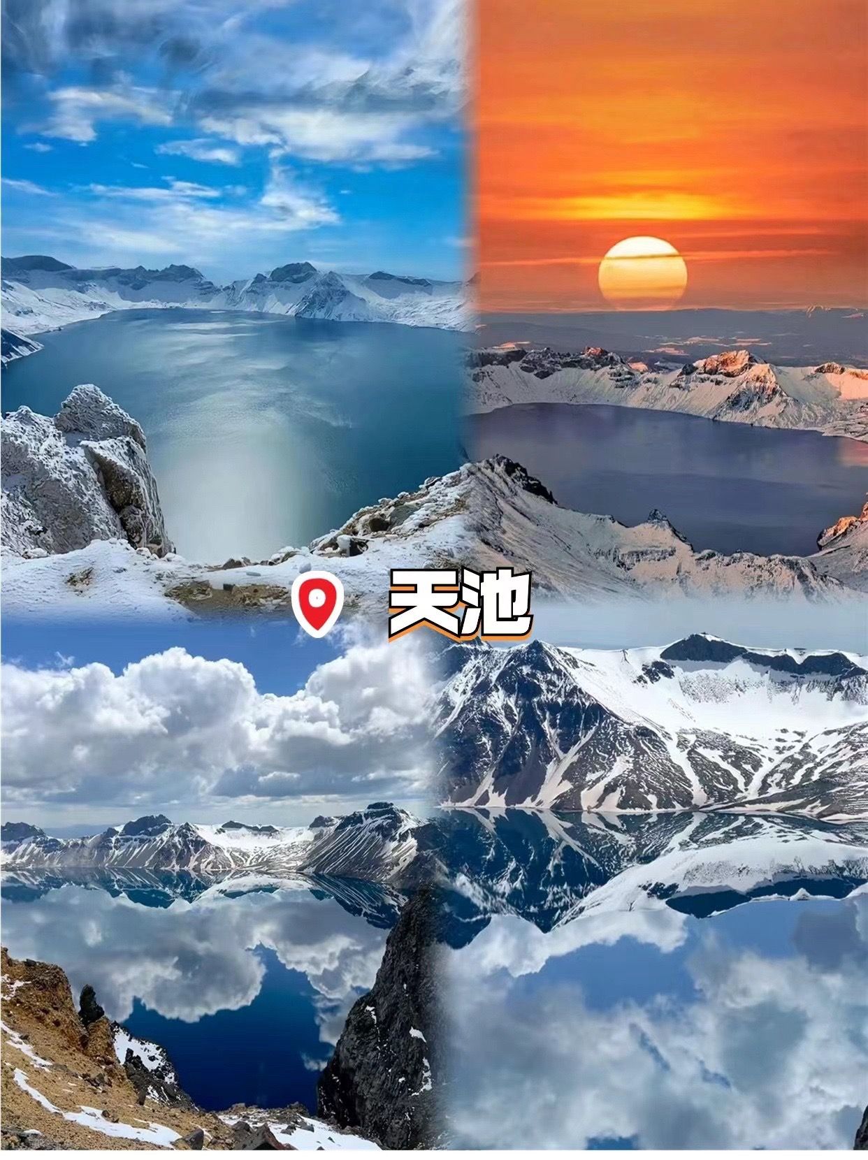 长白山天池:被誉为“东北第一山”,湖光山色美不胜收。